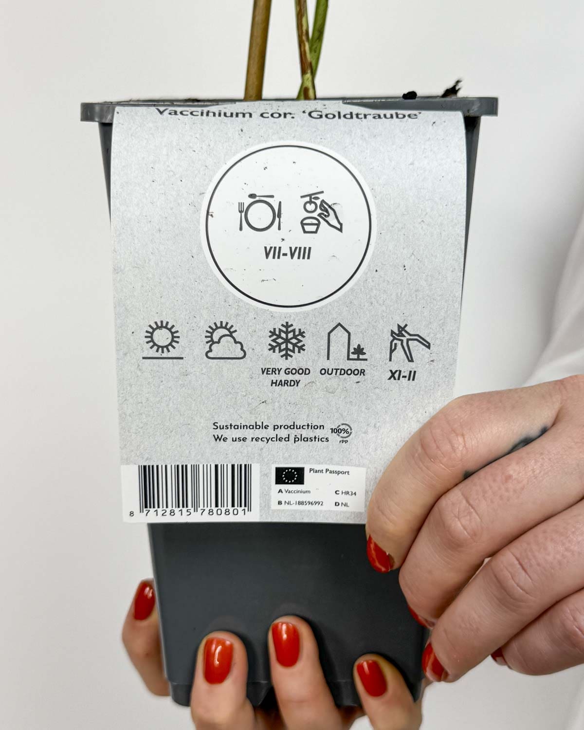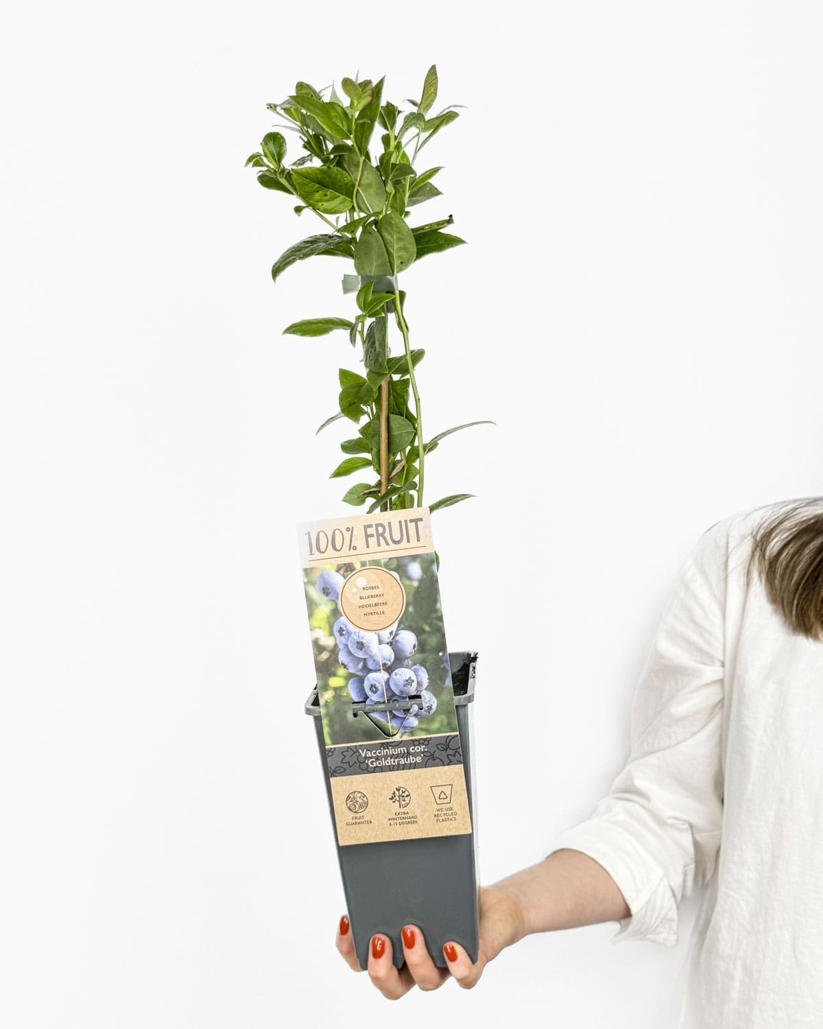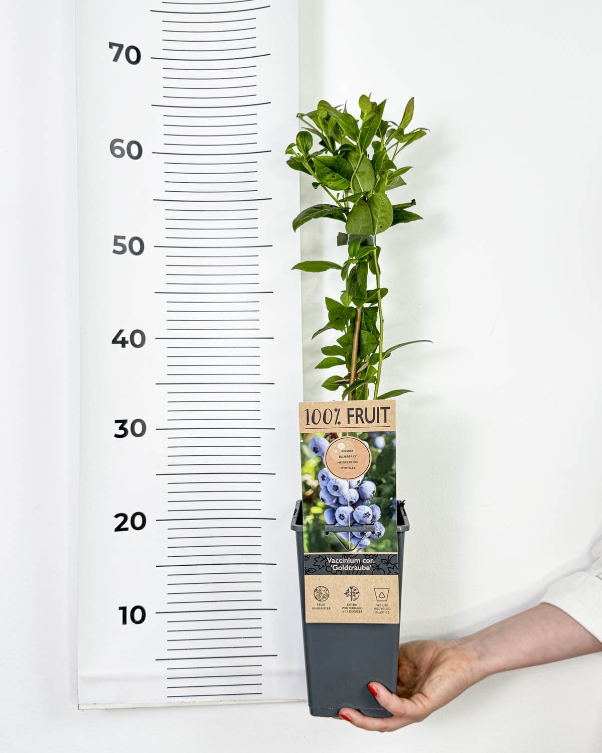 Jsem americká borůvka ‚Goldtraube 71‘, jedna z nejspolehlivějších a nejplodnějších amerických borůvek pro naše podnebí. S mými velkými plody si můžeš pochutnat ke konci léta nebo začátkem podzimu. Rychle rostu a mohu dosáhnout až 2 metry výšky.