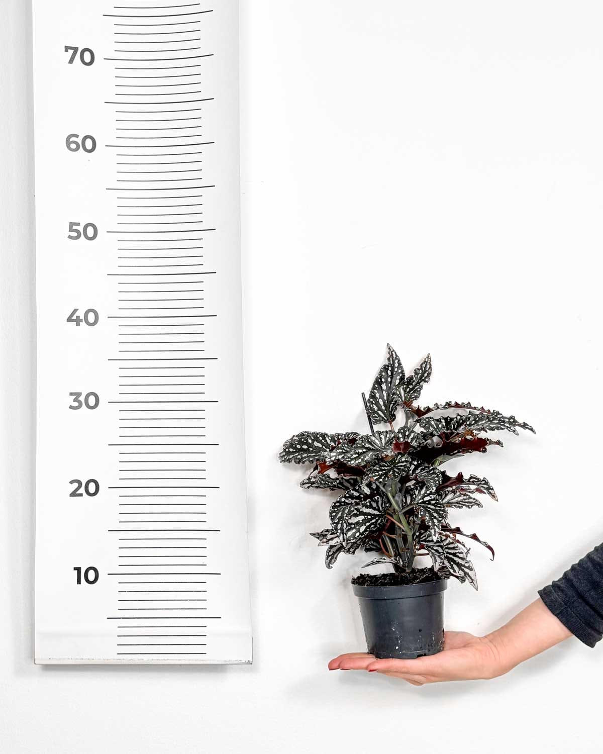 Jsem Begonie ‚Spotlight Dark‘ (Begonia maculata), kterou také nazývají Polka dot begonie. Se svými tmavě zelenými listy a nepravidelnými bílými tečkami vypadám velmi tajemně a hypnoticky. Jsem považována za jednu z nenáročnějších begonií, a s řádnou péčí mohu dokonce vykvést! Ještě jeden tip – v období růstu mě občas zastříhni a tak tvaruj do hustého, keřovitého vzrůstu.