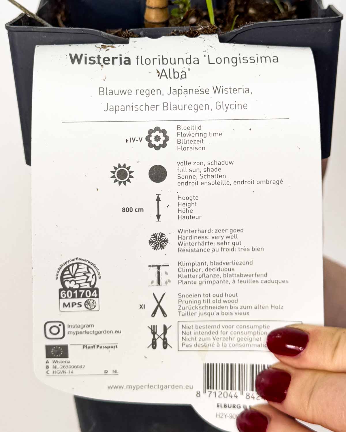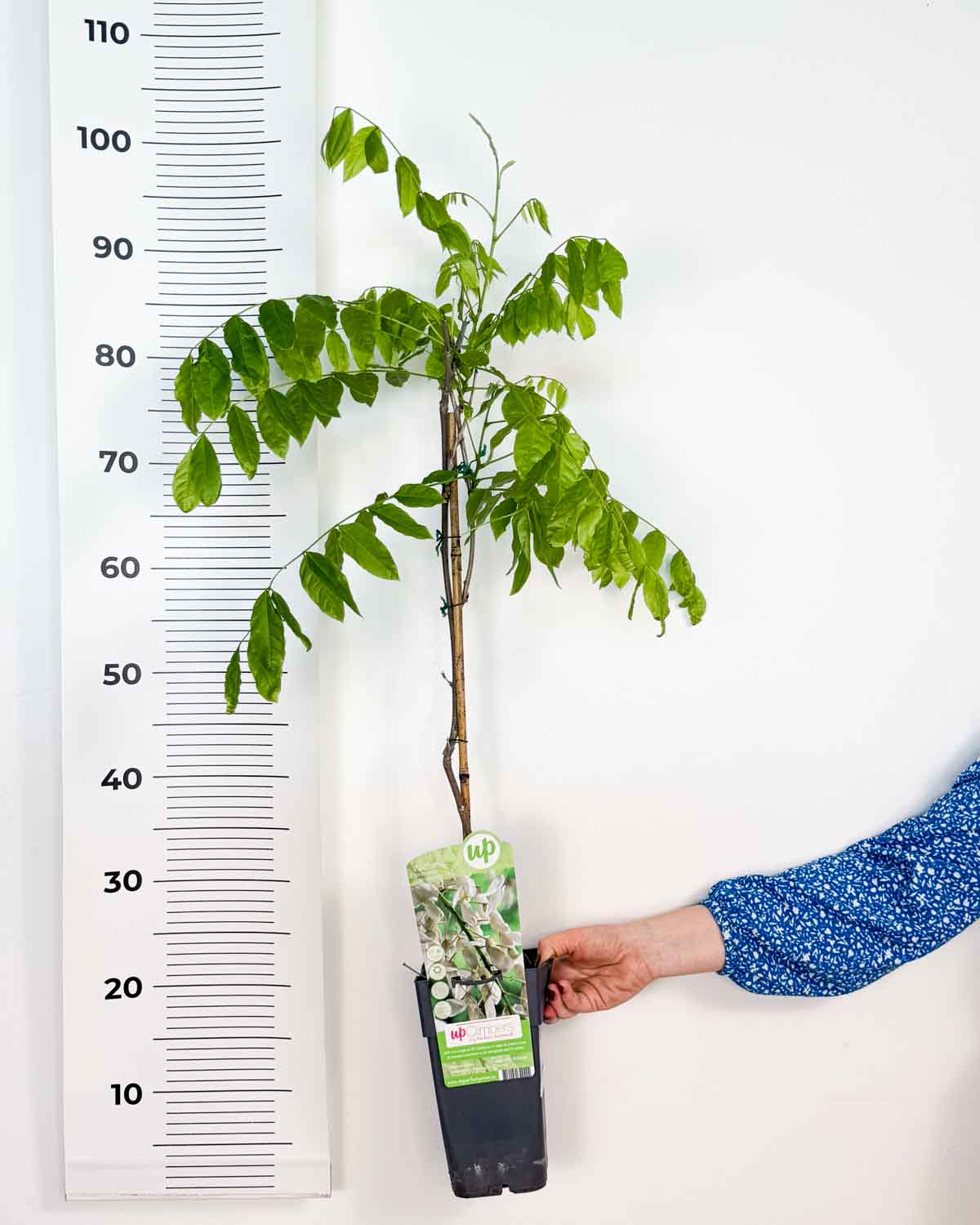 Určitě mě poznáš podle mých nádherných bílých květů! Jsem Wisteria floribunda ‚Alba‘, česky japonská vistárie, a často mě najdeš v botanických zahradách nebo parcích – ale teď můžu zdobit i tvou zahradu, pergolu nebo balkon.