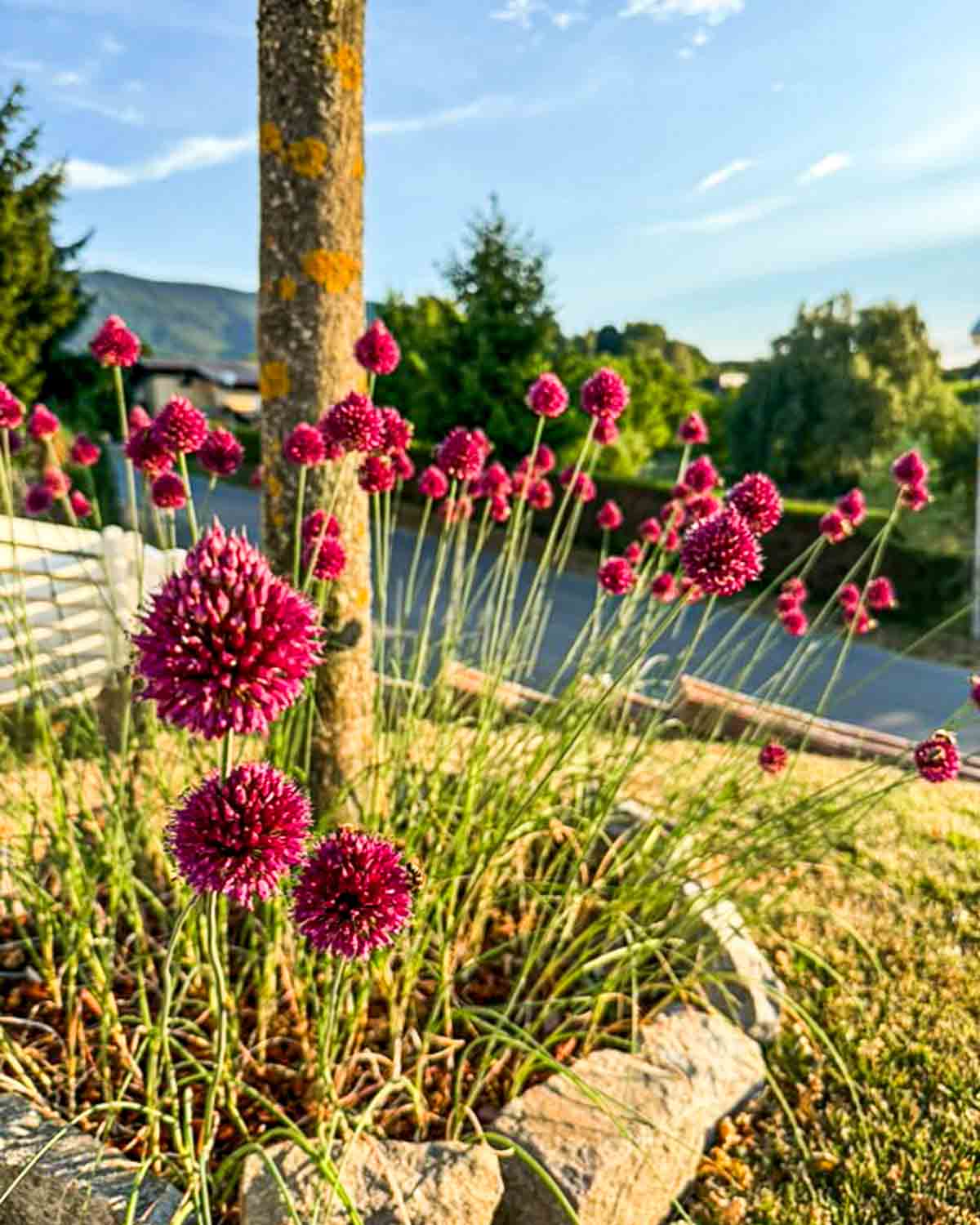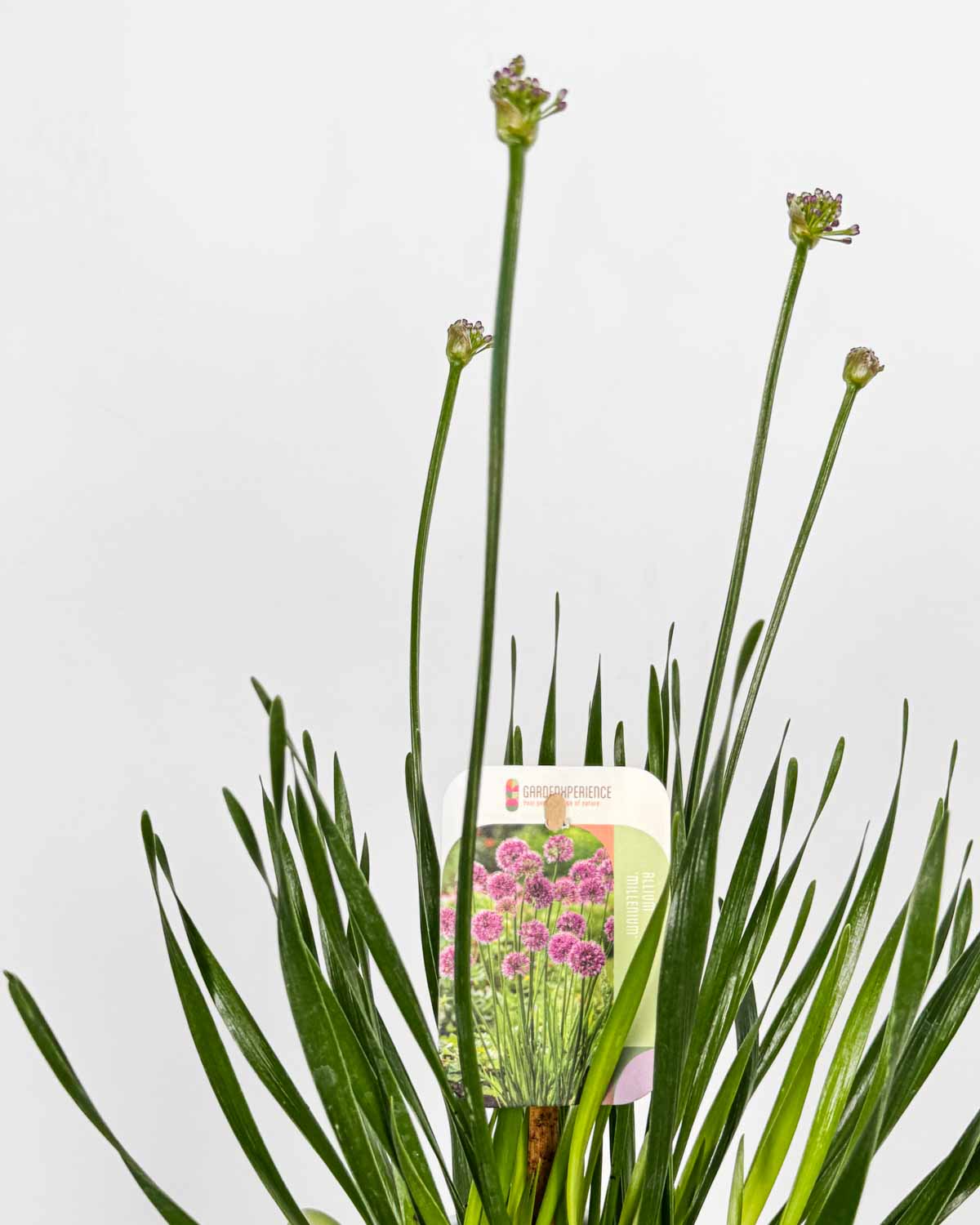 Jsem česnek okrasný (Allium ‚Millenium‘) – nádherná trvalka, která okouzlí každého svými velkými fialovými květy a dlouhým obdobím kvetení. Můj květinový ohňostroj rozjasní letní záhon od července až do září a dodá zahradě šmrnc i eleganci. Dorůstám do výšky kolem 60 cm a šířky přibližně 30 cm, přičemž plné velikosti dosáhnu za 2–3 roky.
