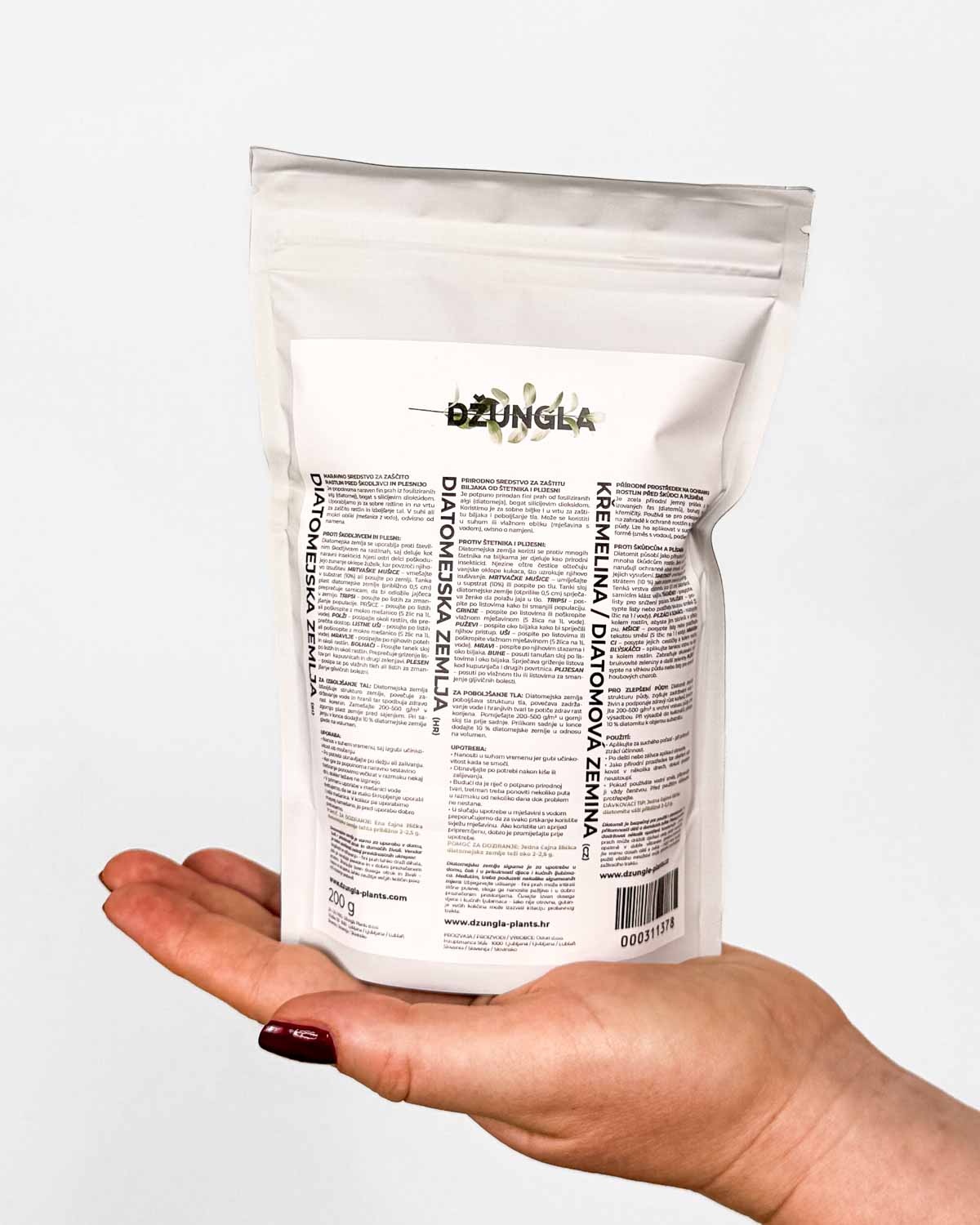 Křemelina je zcela přírodní jemný prášek, který slouží jako účinný přírodní insekticid i zlepšovač půdy. Obsahuje mikroskopické ostré částice, které narušují ochrannou vrstvu těl hmyzu, čímž způsobují jejich dehydrataci a následný úhyn. Zároveň zlepšuje strukturu půdy, zadržování vlhkosti a podporuje zdravý růst kořenů.