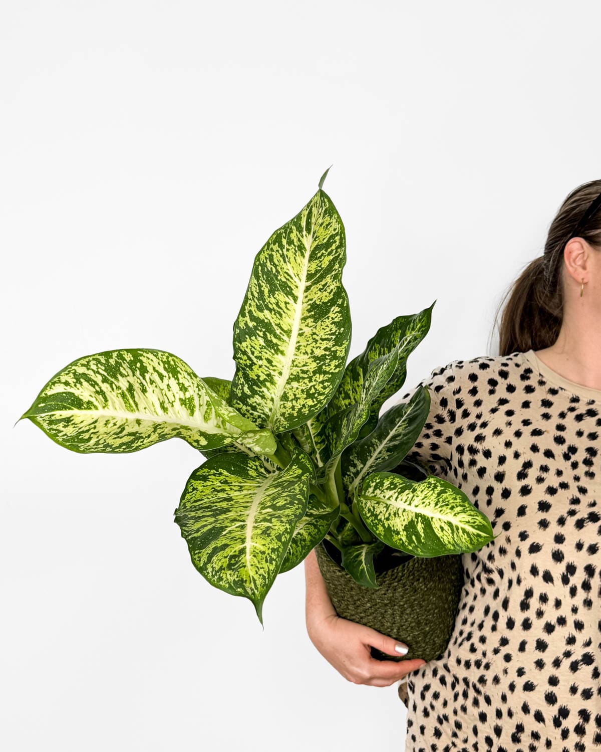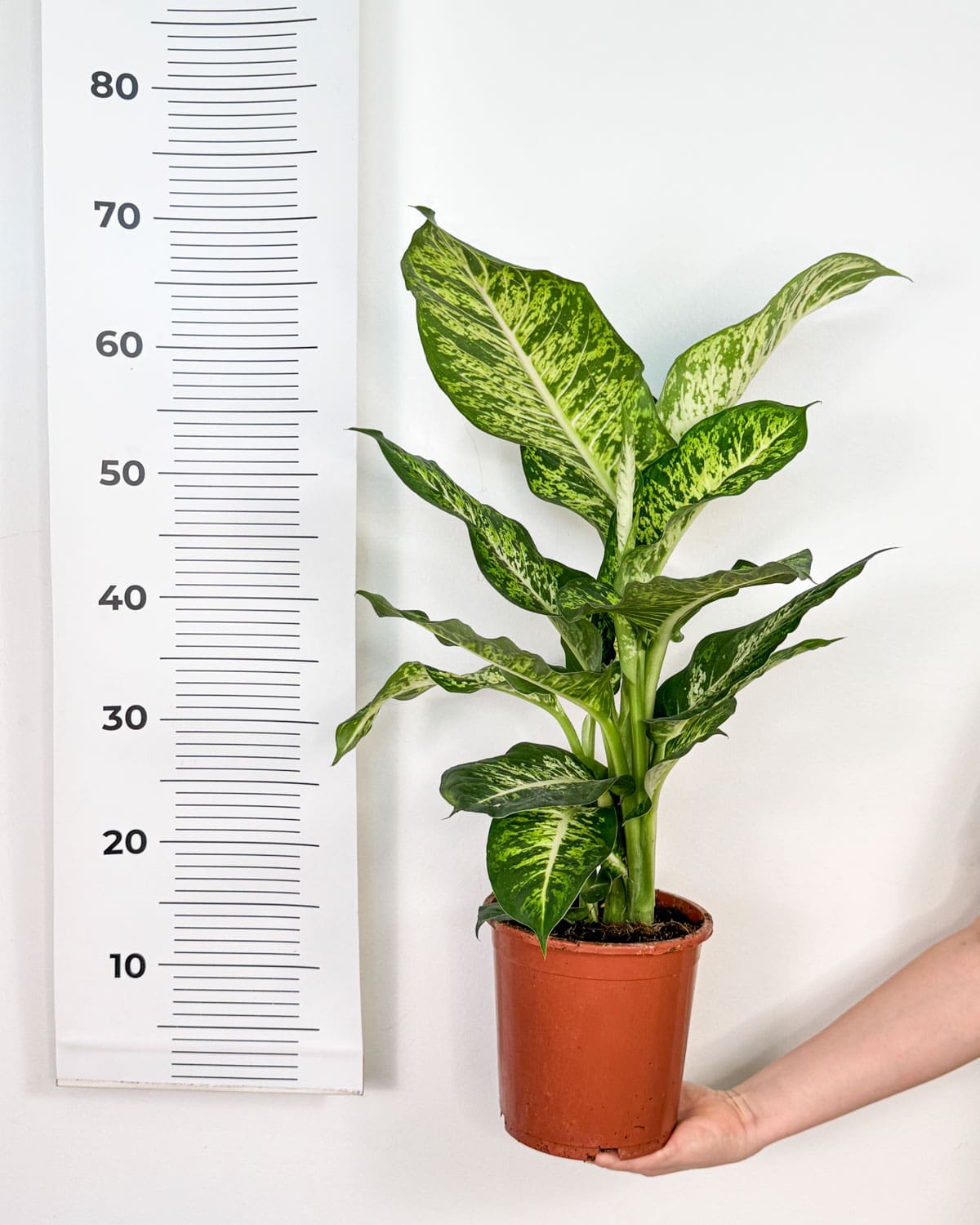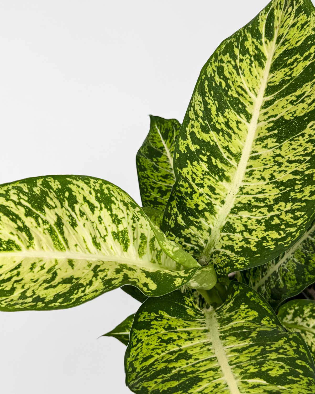 Všichni známe difenbachie, ale už jsi viděl/a takhle barevnou krásku? 🙂 Jsem kultivar Mars a opravdu vypadám, jako bych přiletěla z jiné planety – na mých listech se prolínají zelená, žlutá a bílá v pruhovaných i skvrnitých vzorech.