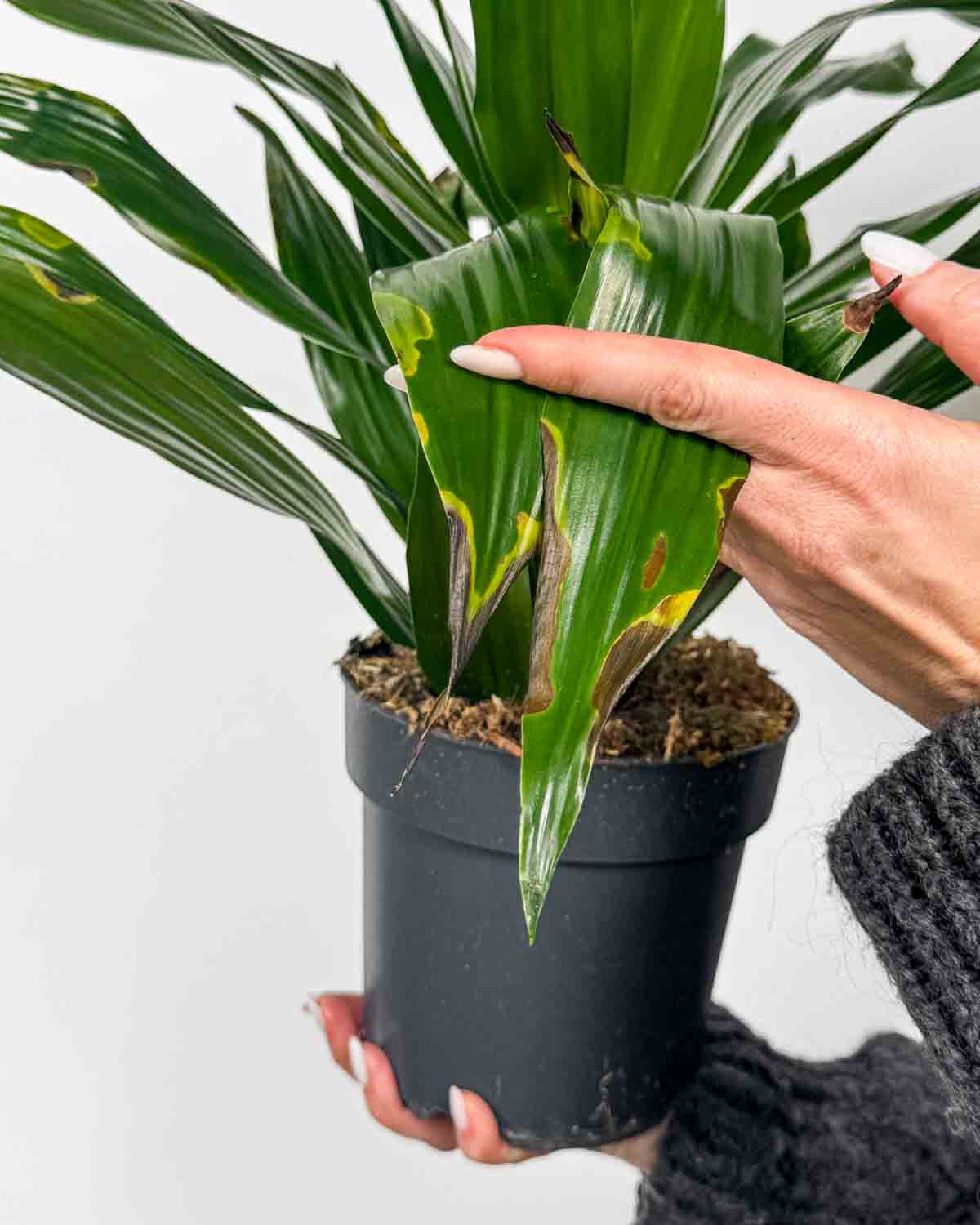 2. Hnědé listy: moje listy mohou zhnědnout z různých důvodů. Jedním z důvodů je hromadění minerálů v půdě v důsledku používání tvrdé vody. V tomto případě mě jednou za měsíc prolévej destilovanou vodou, aby voda chvíli protékala mou půdou a odplavila minerály. Pokud mám suché špičky, jsem pravděpodobně v místnosti, kde je příliš suchý vzduch.