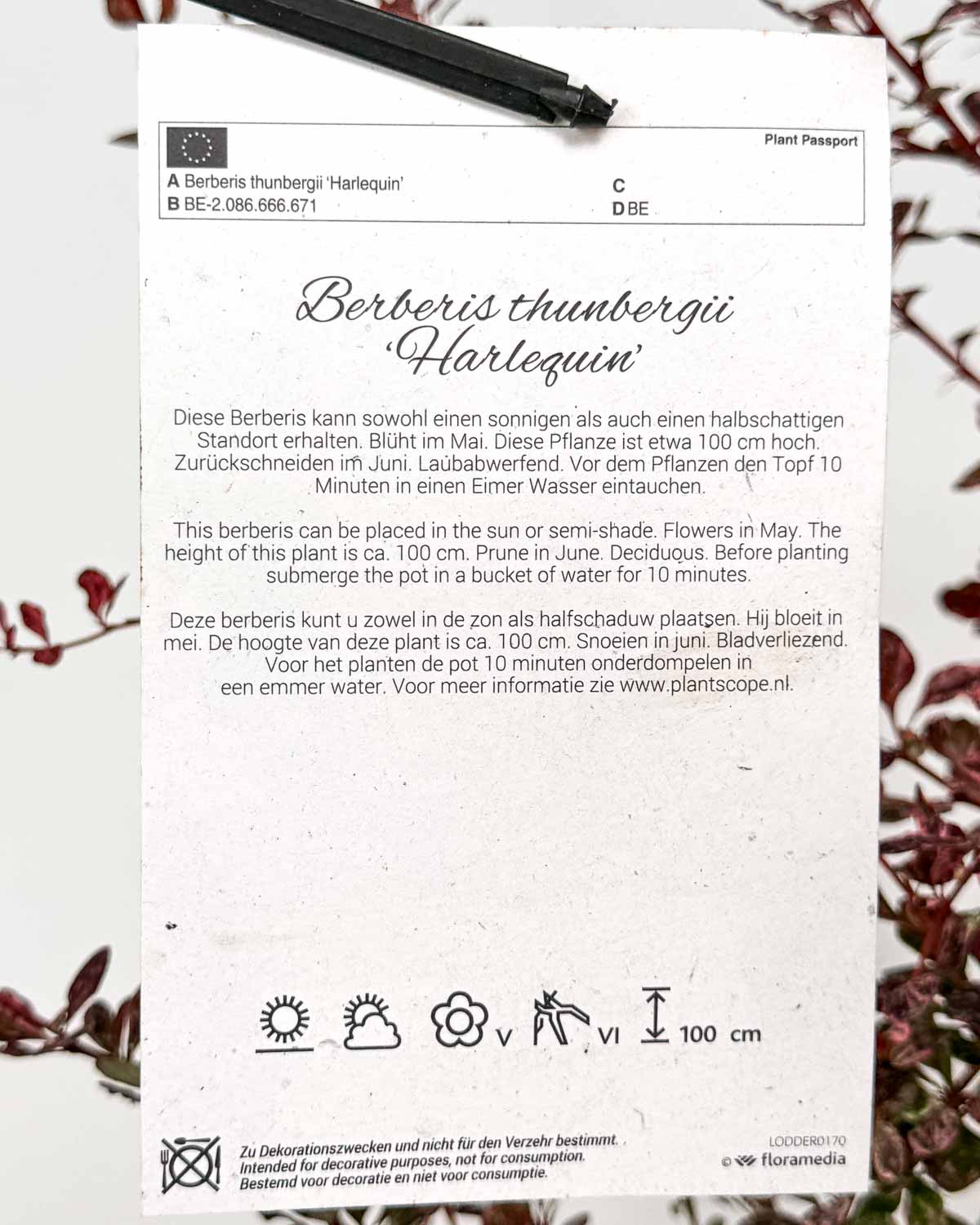 /    /  Kompletní sortiment rostlin  /  Dřišťál Tunbergův ‚Harlequin‘ (Berberis thunbergii) (L)
