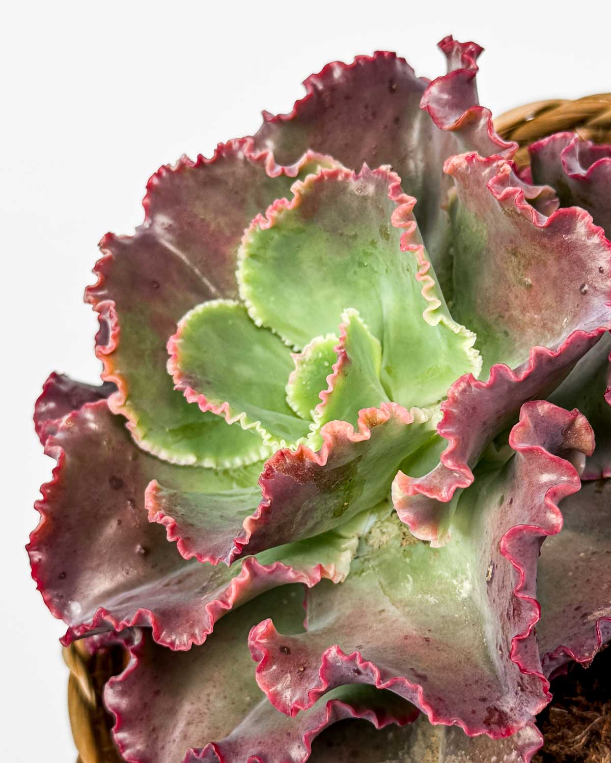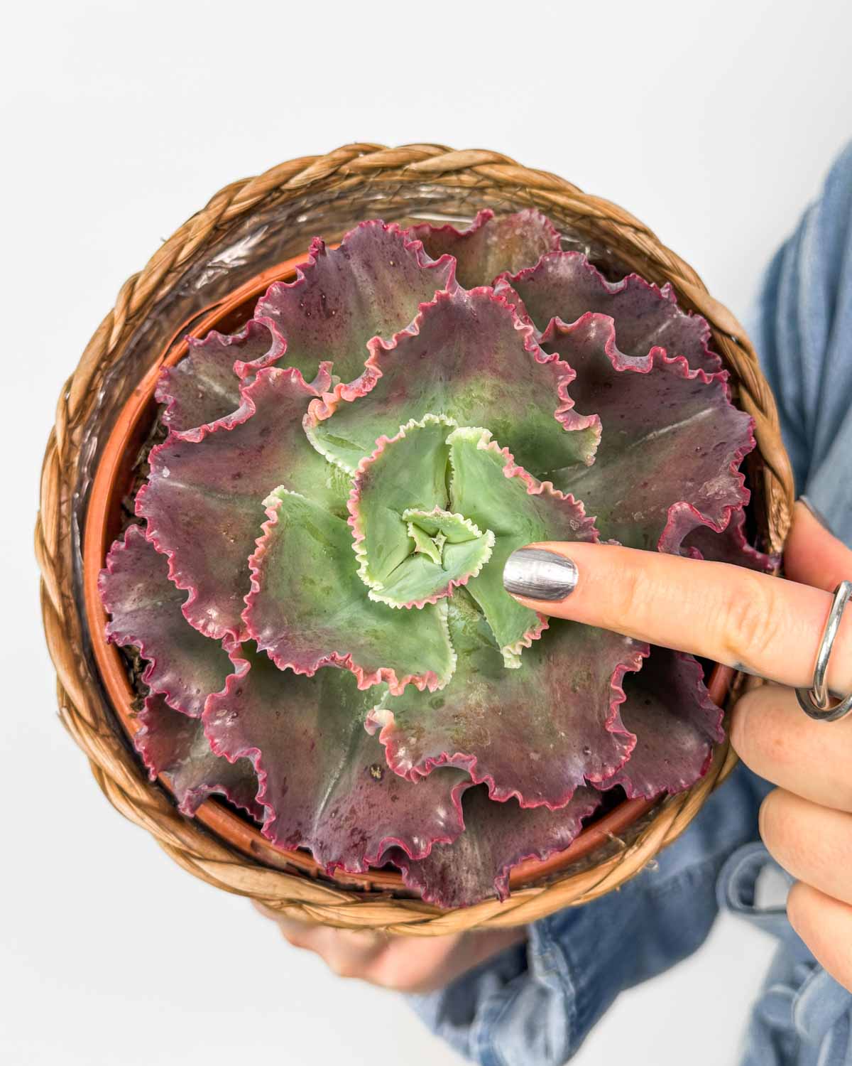 Jsem Echeveria ‚Giant Blue‘, unikátní sukulent z Mexika, který na první pohled připomíná krásnou hlávku salátu 🙂 Moje velké, masité listy totiž tvoří hustou růžici, která je v základu modro-zelená s jemnými růžovými okraji. Dosahuji průměru a výšky až 30 cm, pro krásný hustý růst potřebuji spoustu přímého světla 😉