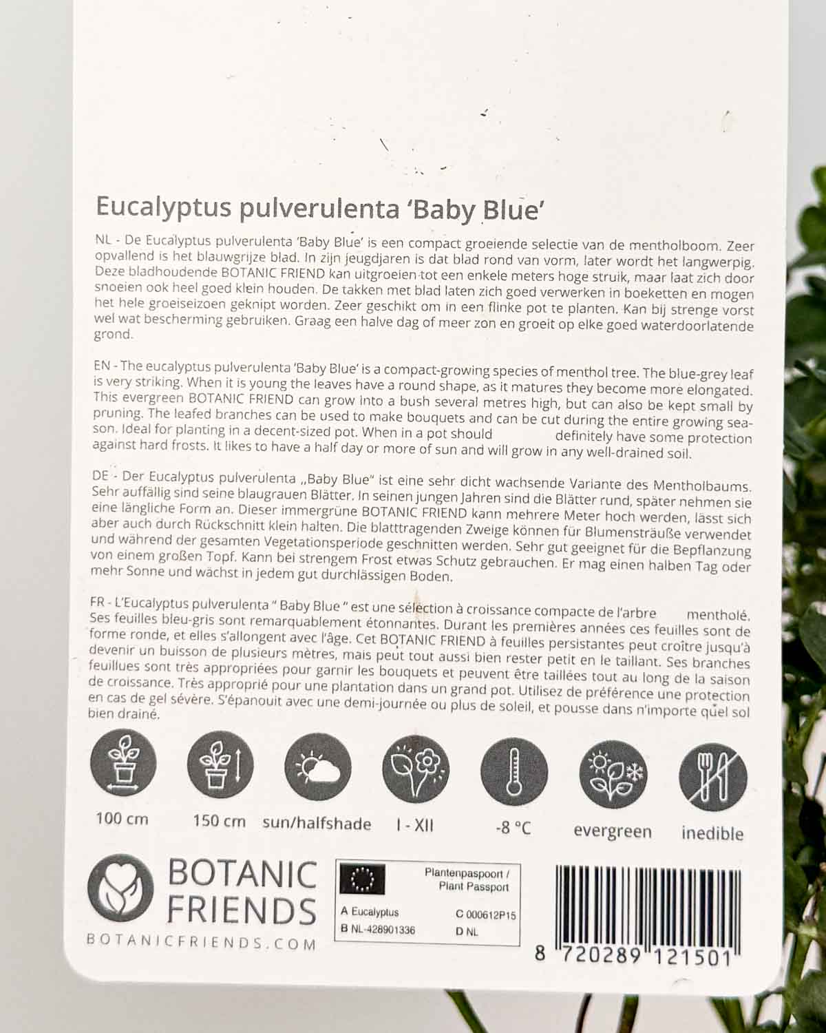 Jako každý jiný eukalyptus mám rád pobyt venku, takže mě umísti na světlé místo, kde si užiju ne příliš přímé sluneční světlo. Silné odpolední slunce mě totiž může spálit. Při zalévání pečlivě sleduj horní vrstvu půdy a zalévej mě, když je suchá, zvláště v horkých letních dnech. Uvnitř nemusím být příliš spokojený, protože mi bude chybět vítr, který by hladil mé lístky, a tak bych je mohl protestně shodit. 🙂 I když jsem citlivý na vítr, nízké teploty snáším bez problémů, zvládnu až -10 °C. Jen tě prosím, abys mě během prvních dvou zim chránil/a netkanou textilií, protože jako malá rostlina jsem trochu citlivější.