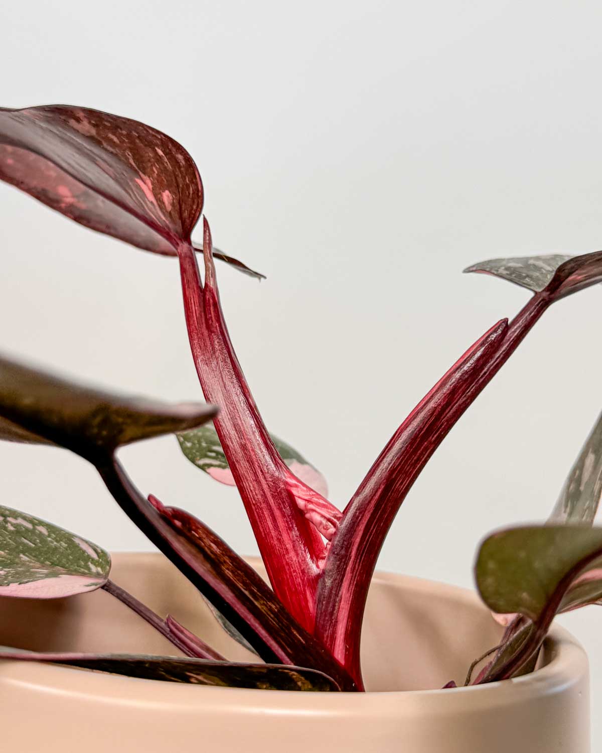 Jsem Filodendron ‚Pink Princess‚ (Philodendron) a patřím mezi vzácnější a velmi vyhledávané rostliny – jsem totiž uměle vyšlechtěný hybrid, který vznikl v 70. letech křížením dvou druhů filodendronů. Moje růžové panašování není náhoda, ale výsledek genetické mutace, díky které získávám svůj jedinečný vzhled.