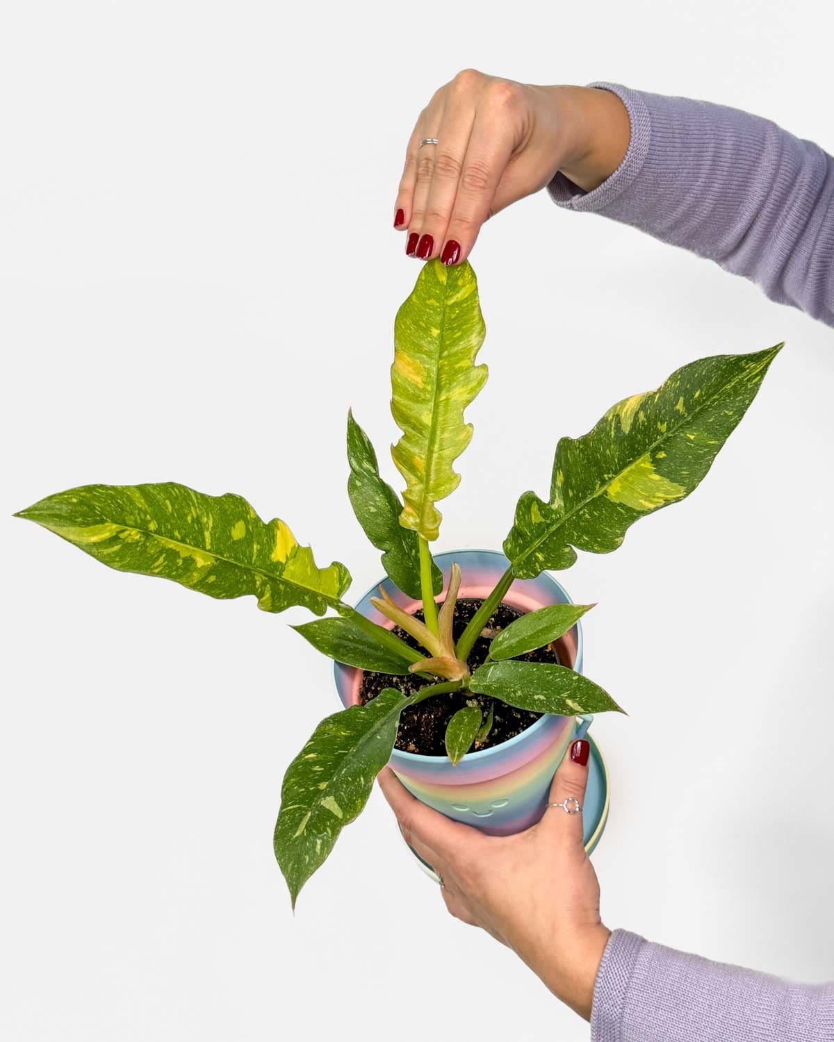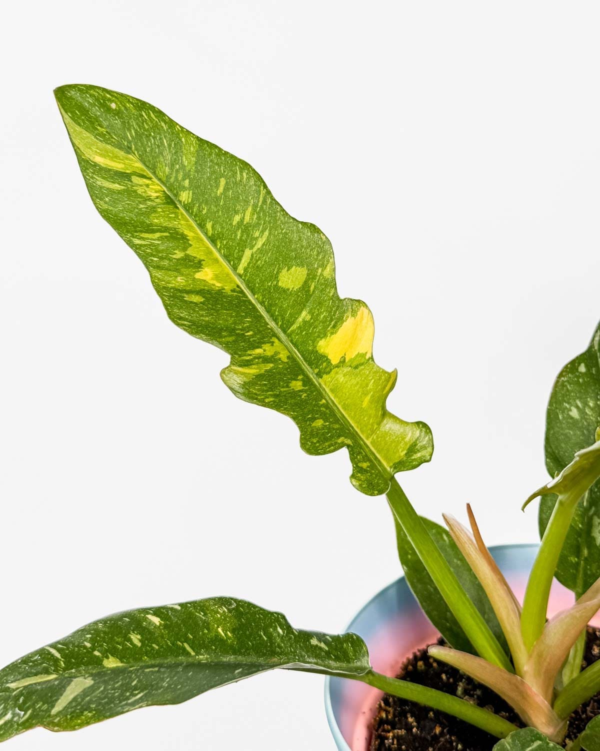 Jsem filodendron ‚Ring of Fire‘ (Philodendron tortum × wendlandii) – výjimečný kříženec, který vznikl spojením filodendronu tortum a wendlandii. Cílem bylo vytvořit rostlinu s podlouhlými, vlnitými a neobyčejně pestrými listy. A povedlo se, nemyslíš?