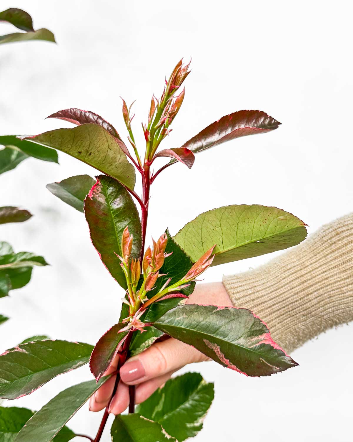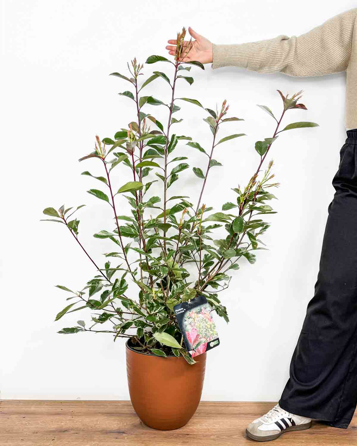 Jsem Fotinie ‚Louise‘ (Photinia × fraseri). Jsem nádherný, stálezelený keř, který rozzáří každou zahradu či terasu. Moje mladé listy hrají odstíny červené a růžové s krémovými okraji a postupně se proměňují v tmavě zelené s jemným bílým lemem. Na jaře mě navíc zdobí drobné bílé květy, které podtrhují mou krásu. Dorůstám do výšky a šířky 2,5 až 4 metry, a proto mě často najdeš jako součást živých plotů nebo jako okrasný solitér.