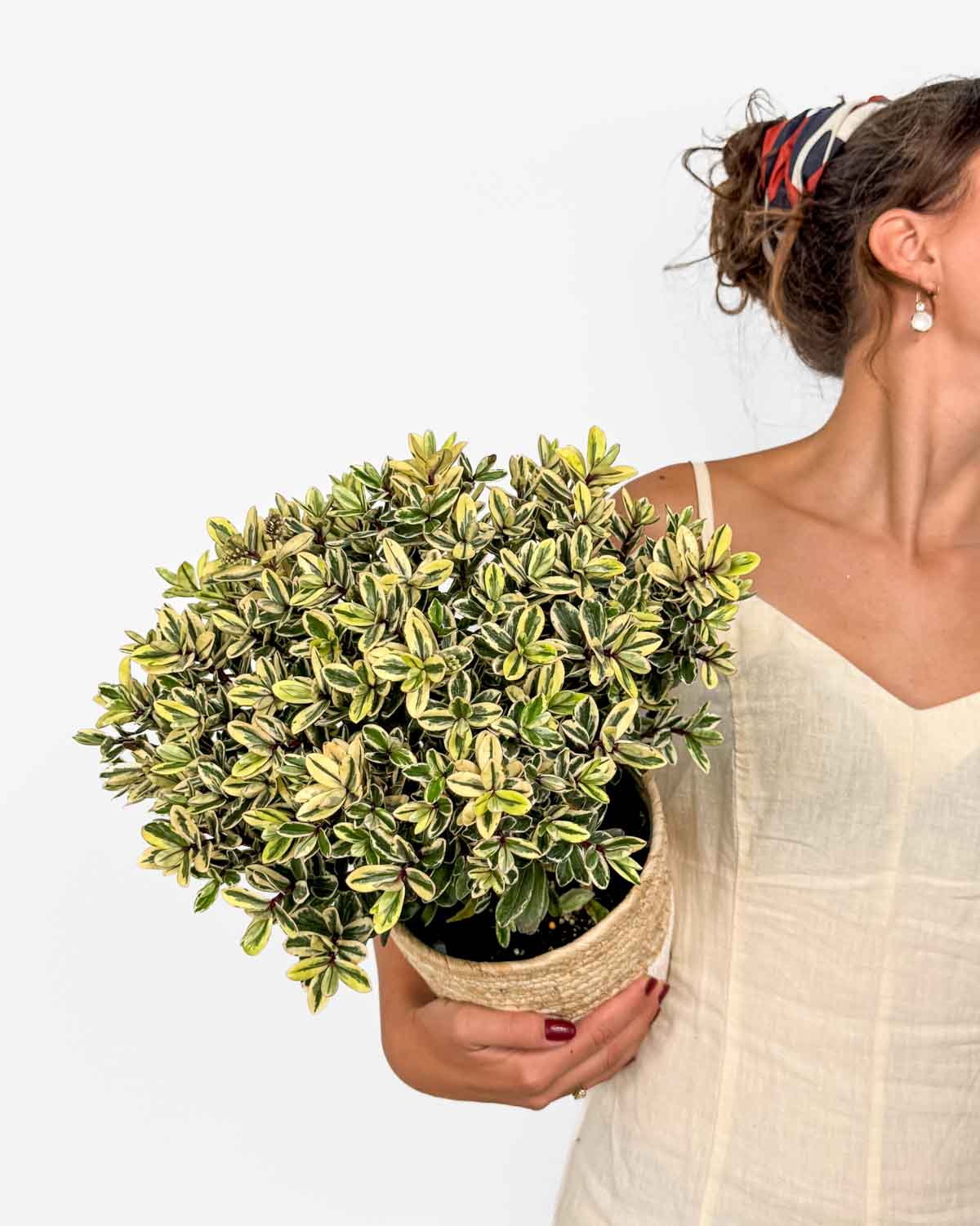Na fotografiích je ukázka jedné z rostlin. Každá rostlina je jedinečná, proto jsou drobné odchylky normální. Mezi vyobrazenou a zakoupenou rostlinou mohou být drobné rozdíly ve velikosti, variegaci, počtu listů, větví, květů atd…