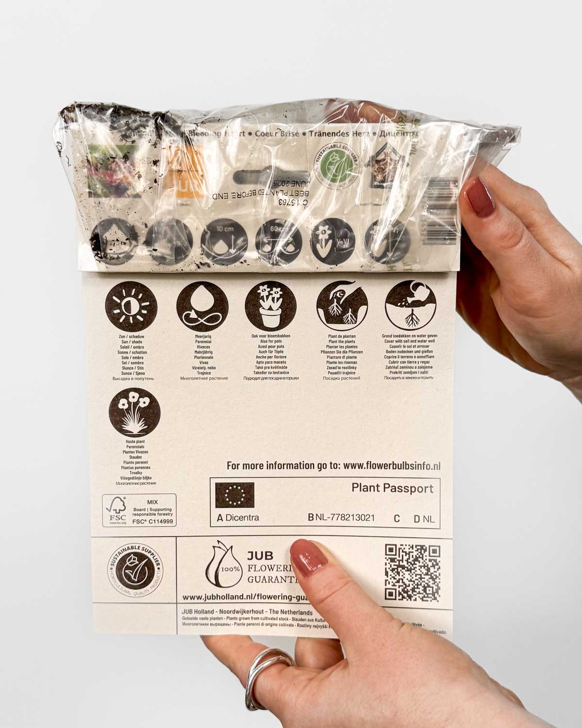 Jsem hlíza Srdcovky nádherné (Dicentra spectabilis), vypěstovaná u pěstitele Jub. Zaručuji kvalitu, pokud dodržíš pokyny na obalu.