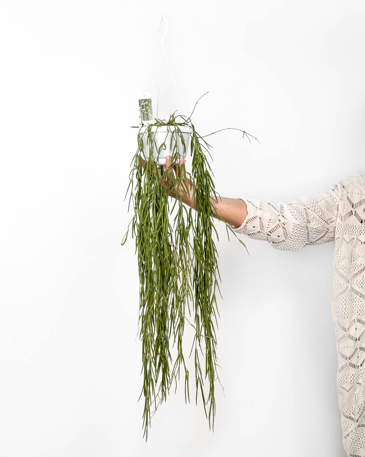 Jsem jedinečná Hoya linearis. Jsem známá svými elegantními, dlouhými, tenkými a visícími výhonky. Nejlépe vynikám v závěsném květináči, kde mohou moje výhonky volně viset. Když kvetu, vytvářím malé bílé květy ve tvaru hvězdiček, které jsou opravdu roztomilé. 😀