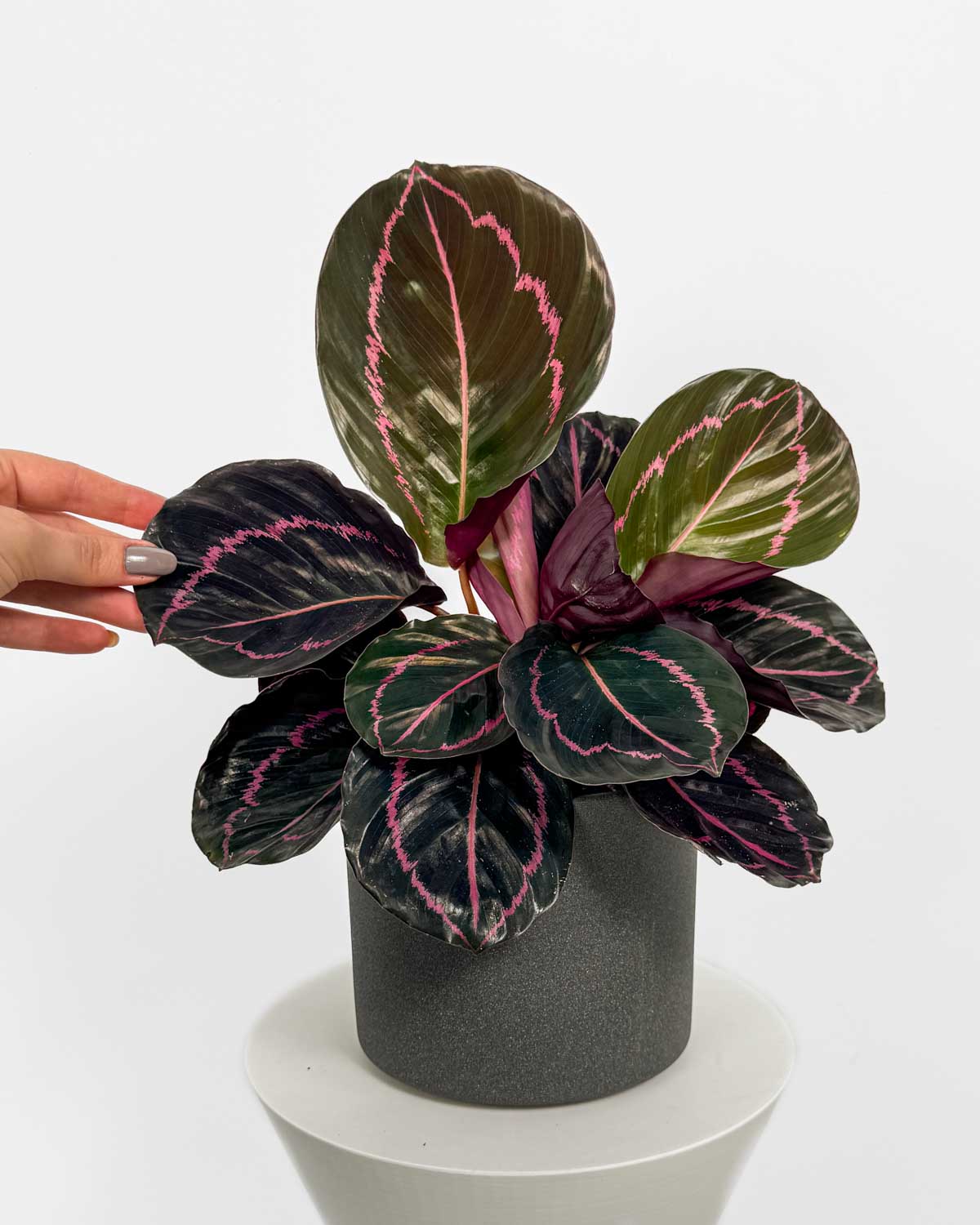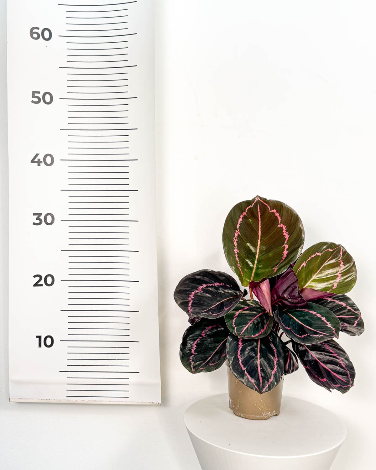 Jsem krásná Kalátea ‚Dottie‘ (Calathea roseopicta) a pyšním se tím, že tvořím lístek v lístku – moje růžové pruhy jsou prostě nepřehlédnutelné! Pocházím z deštného pralesa, a tak miluju vysokou vzdušnou vlhkost a jemné, nepřímé světlo.