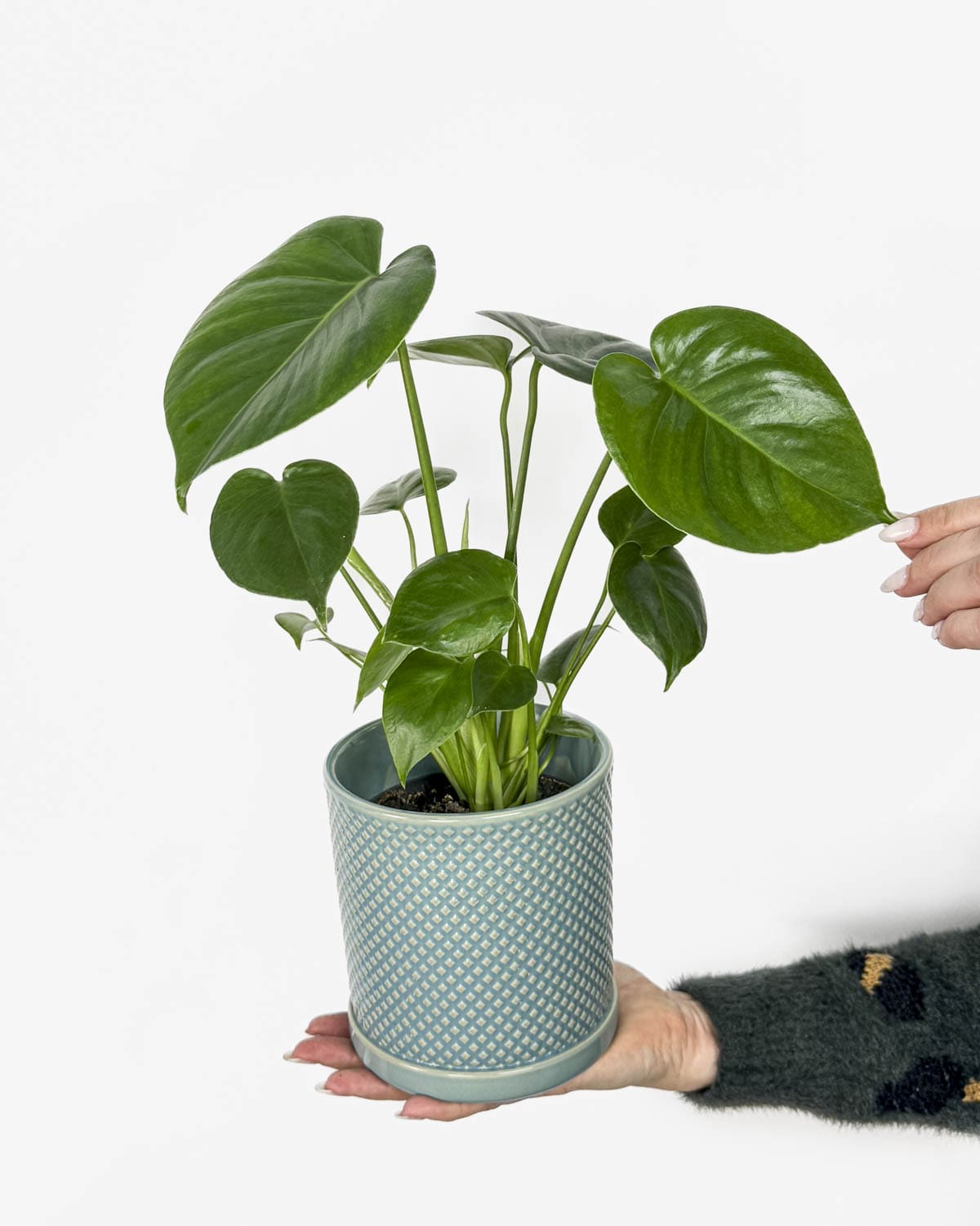 Jsem Monstera deliciosa a jsem nejpopulárnější pokojová rostlina, protože se svými velkými bujnými listy vypadám úžasně. Pokud mám dostatek vzdušné vlhkosti a nepřímého světla, začnu s věkem získávat charakteristické fenestrace (díry a zářezy v listech), díky kterým jsem tak oblíbená. Obecně jsem velmi snadná na péči a velmi rychle rostu (zvláště pokud mi jako popínavé rostlině dopřeješ oporu).