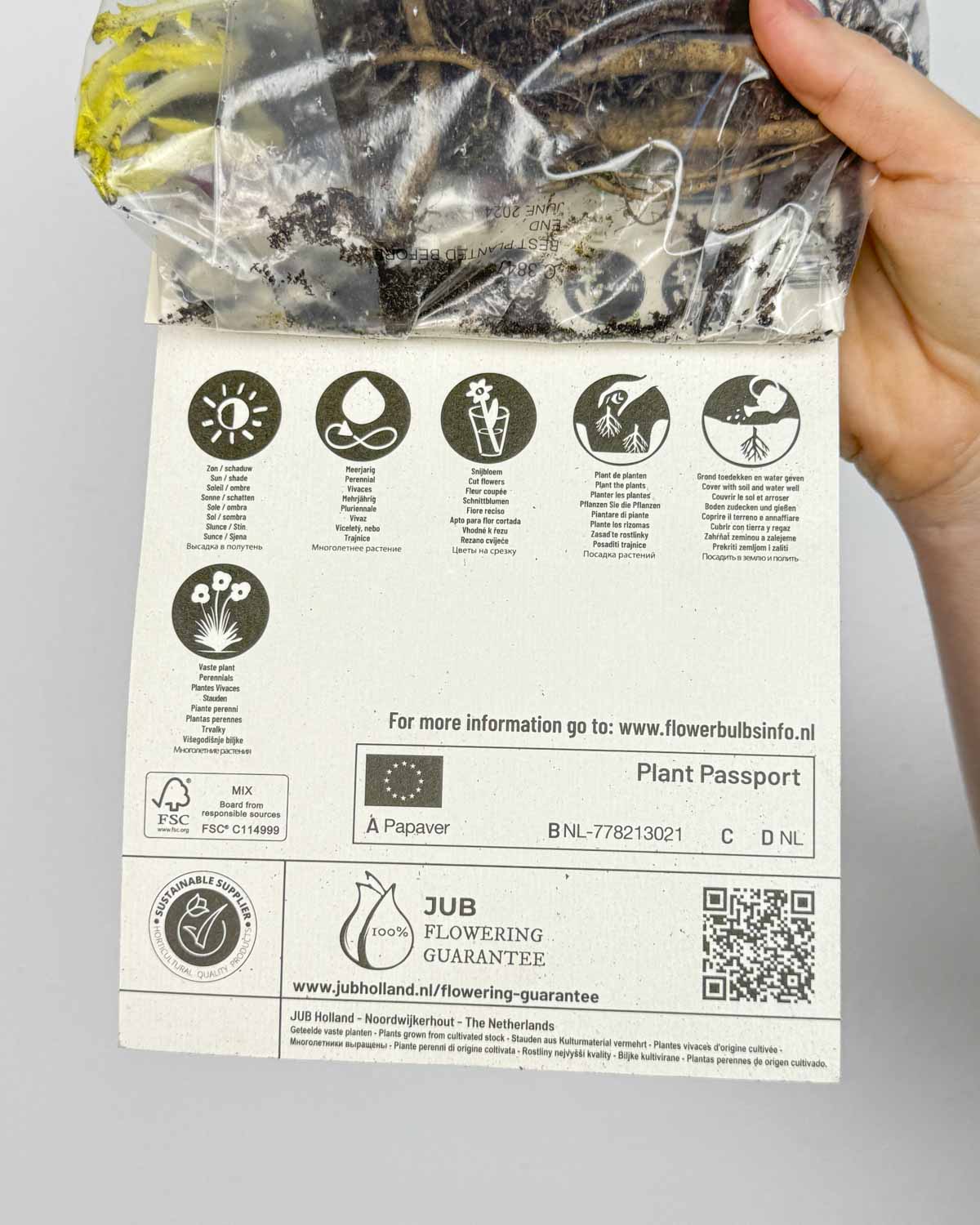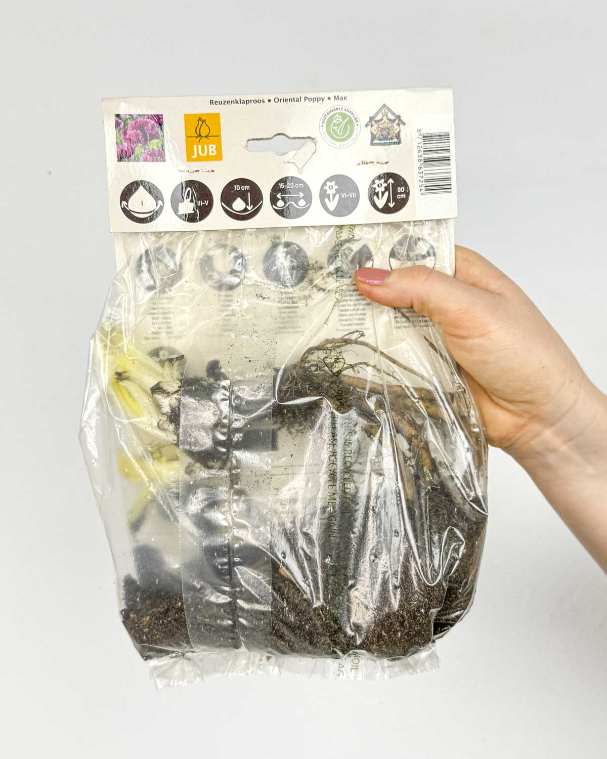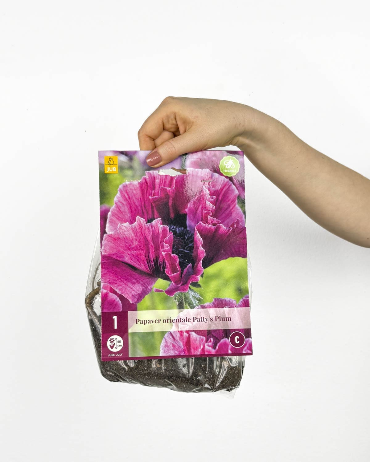 Jsem Hlíza Máku východního ‚Patty’s Plum‘ (Papaver orientale), vypěstovaná u pěstitele Jub. Zaručujeme kvalitu, pokud dodržíš pokyny na obalu.