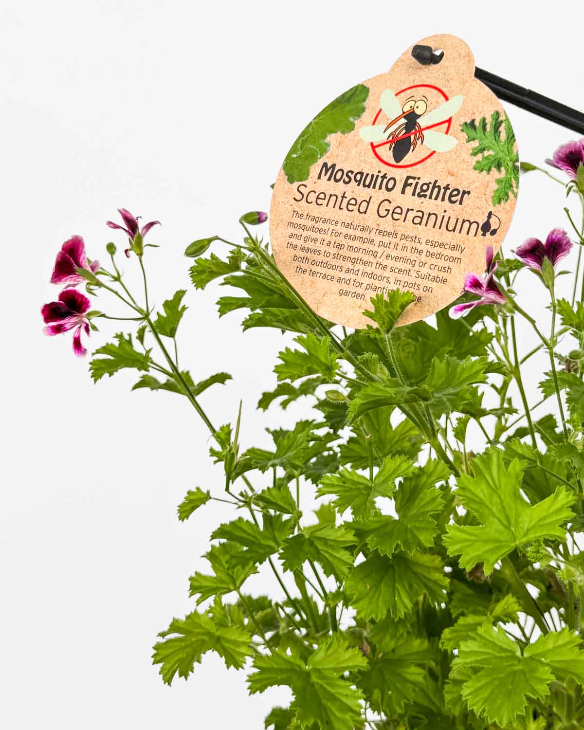 Jsem Pelargonie ‚Lemon Fresh‘ (Pelargonium graveolens), dobře známá venkovní okrasná rostlina. Již řadu let zdobím nejkrásnější balkony, terasy a okenní parapety. Nejsem však jen krásná – i když mé plné květy jsou opravdu nádherné – jsem také účinná při odpuzování komárů, což je ideální pro letní sezónu. 😉 Jsem okrasná rostlina, proto nejsem vhodná ke konzumaci.