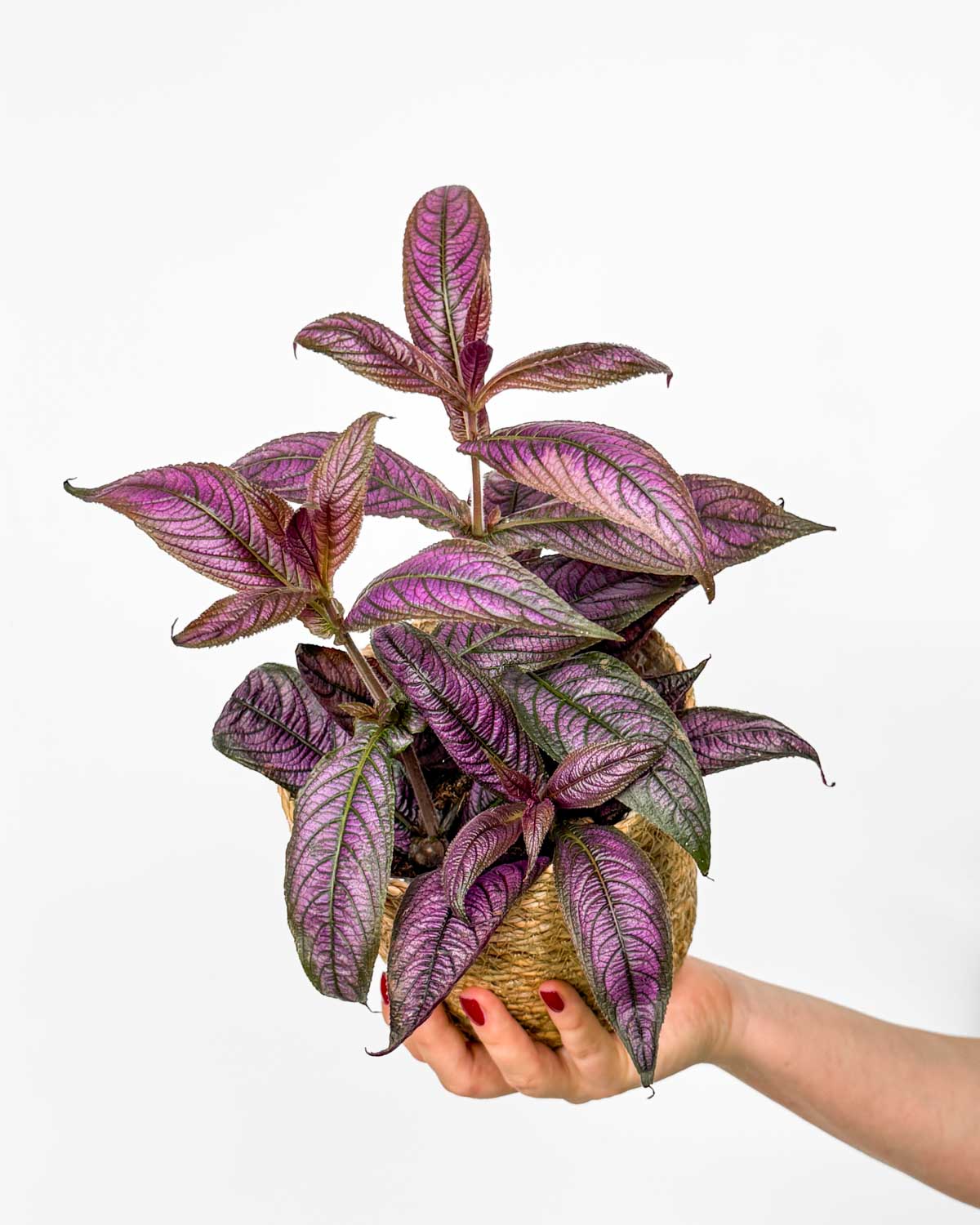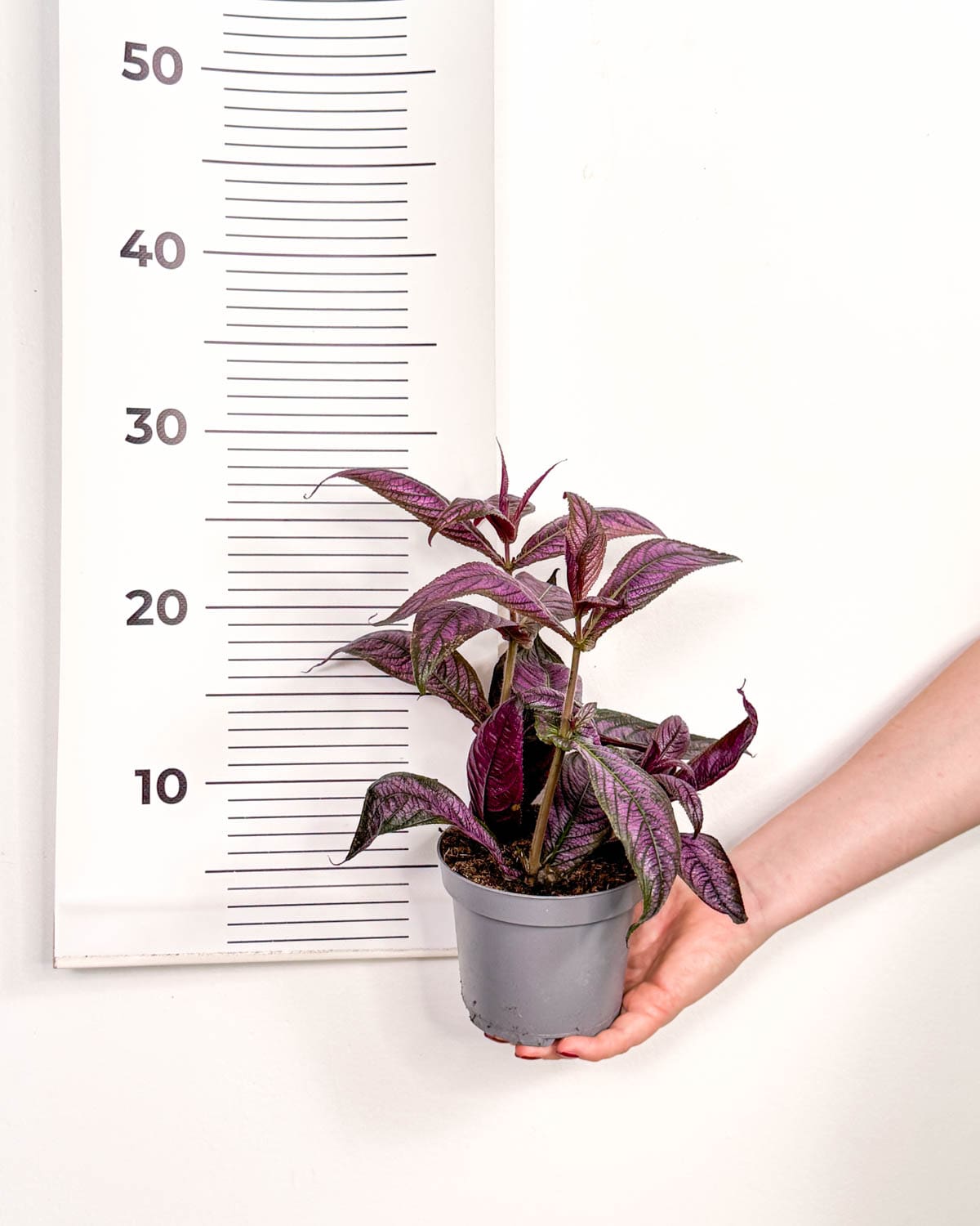 Jsem perský štít (Strobilanthes dyeriana) – rostlina, která zaujme nejen svými sytě zbarvenými listy, ale i neobvyklým tvarem. Svůj název „perský štít“ jsem dostal podle listů připomínajících starodávný štít, a „perský“ proto, že pocházím z Asie.