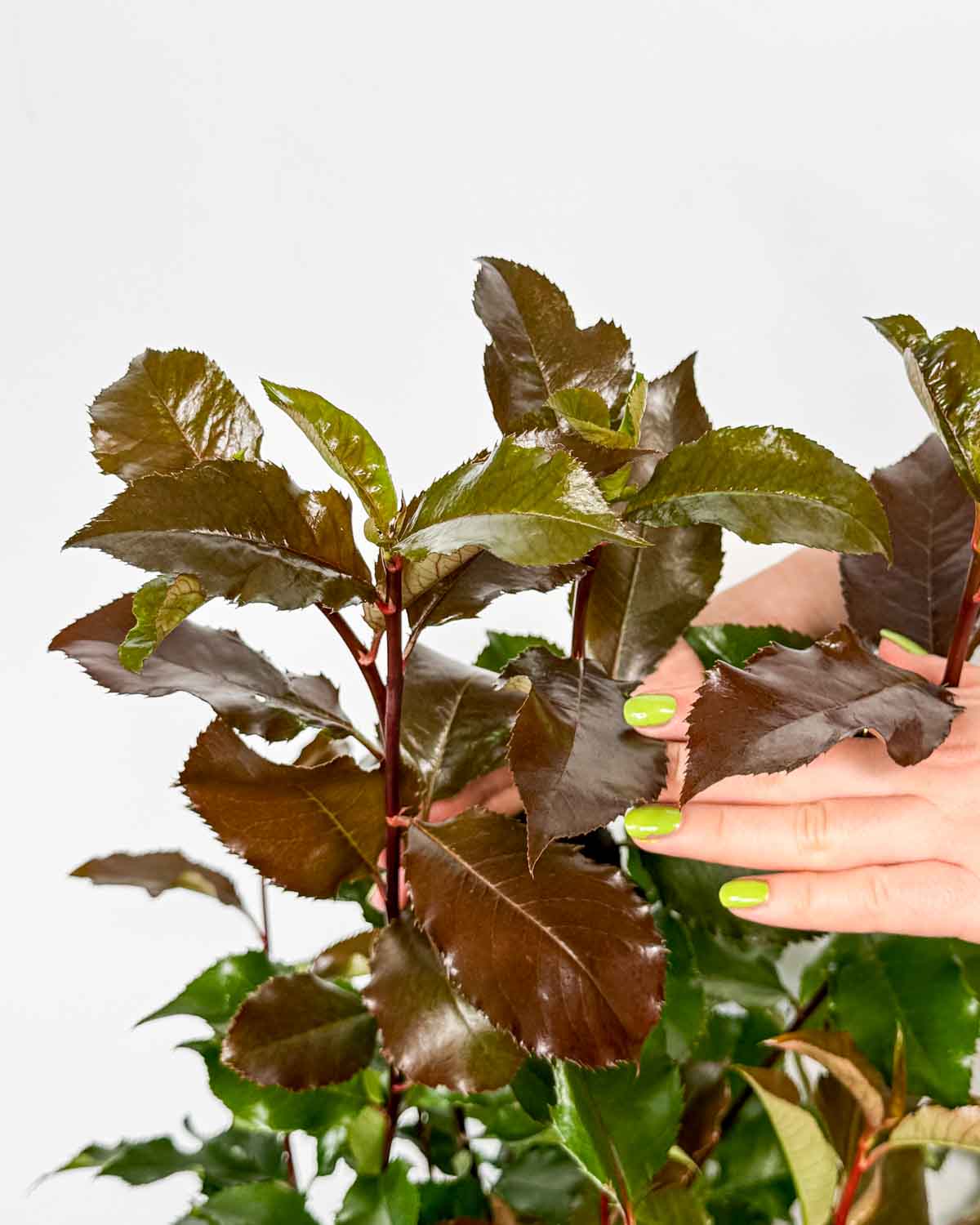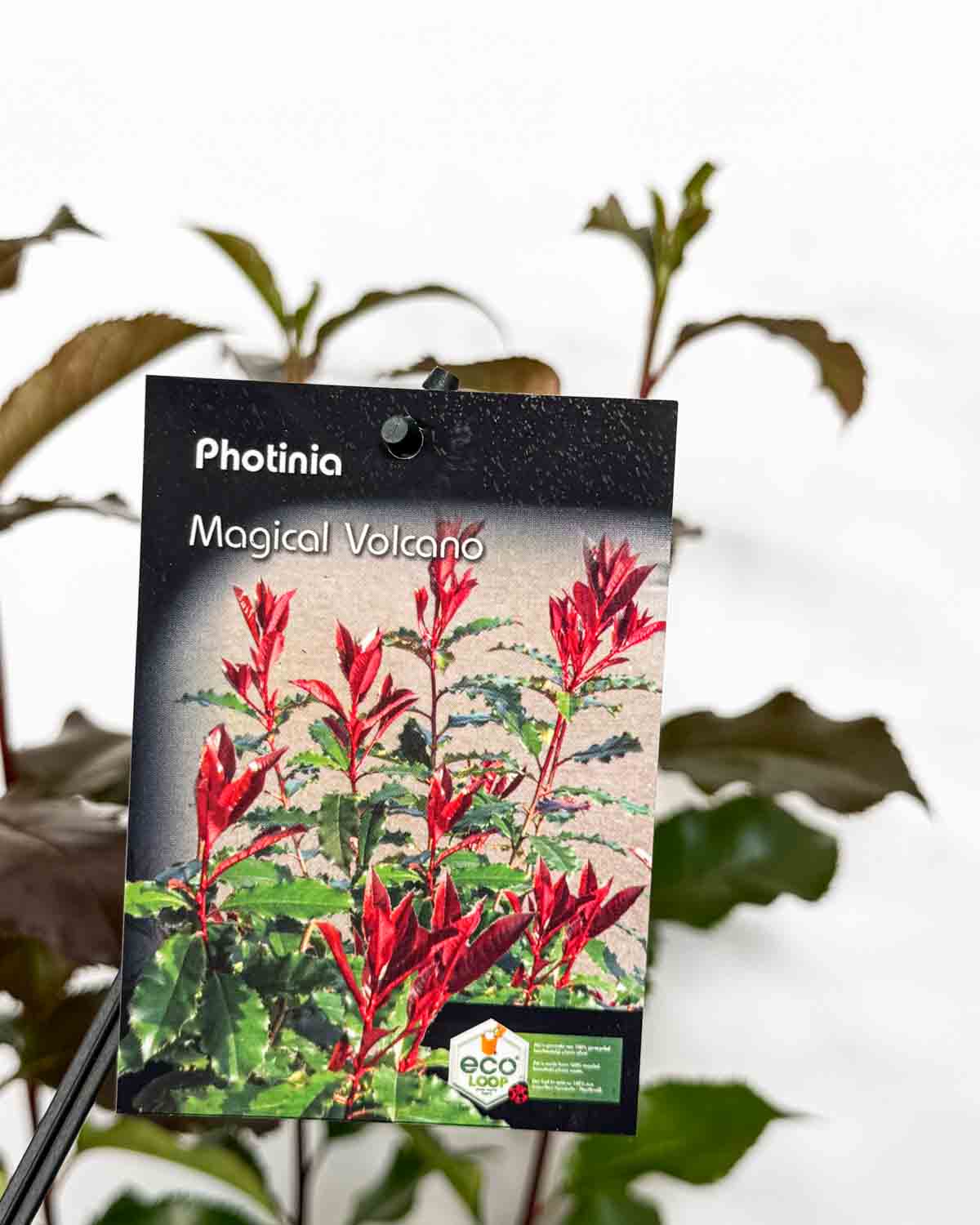 Jsem červená fotinie ‚Magical Volcano‘ (Photinia fraseri), výjimečná fotinie, známá svými sytě červenými mladými listy, které zaujmou na první pohled. Rychle rostu – klidně až do výšky 1,5 metru – a protože jsem stálezelená a odolná, skvěle se hodím pro živé ploty nebo jako solitér na balkon či terasu.