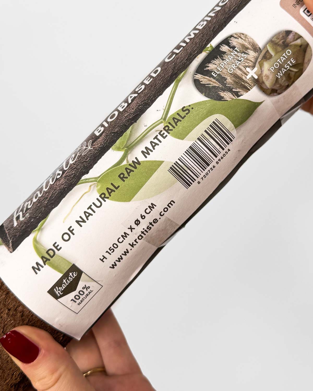 Jsem 100% přírodní opora, ideální pro monstery, potosy a filodendrony, které si přejí něco, na co se mohou dobře přichytit. Jsem vyrobena z bramborových slupek a rákosu Miscanthus Giganteus – zcela přírodní, bez plastů a chemie!