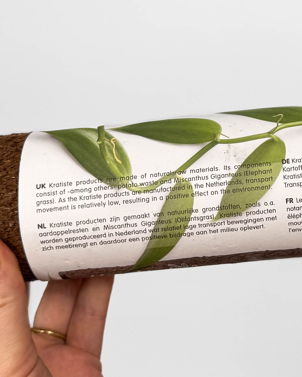 Přírodní opora Kratiste (XXL) je dokonalou volbou pro všechny milovníky popínavých rostlin, kteří hledají udržitelné řešení. S délkou 150 cm a průměrem 6 cm poskytne oporu i těm nejambicióznějším rostlinám! Je vyrobena v Nizozemsku z místních zbytků bramborových slupek a udržitelně pěstovaného obřího rákosu (Miscanthus Giganteus). Její hrubá textura umožňuje, aby se vzdušné kořeny rostlin pevně uchytily, což urychluje růst a vývoj. Jakmile oporu již nebudete potřebovat, jednoduše ji odnesete na kompost – rozloží se přirozeně a vrátí se zpět do země.