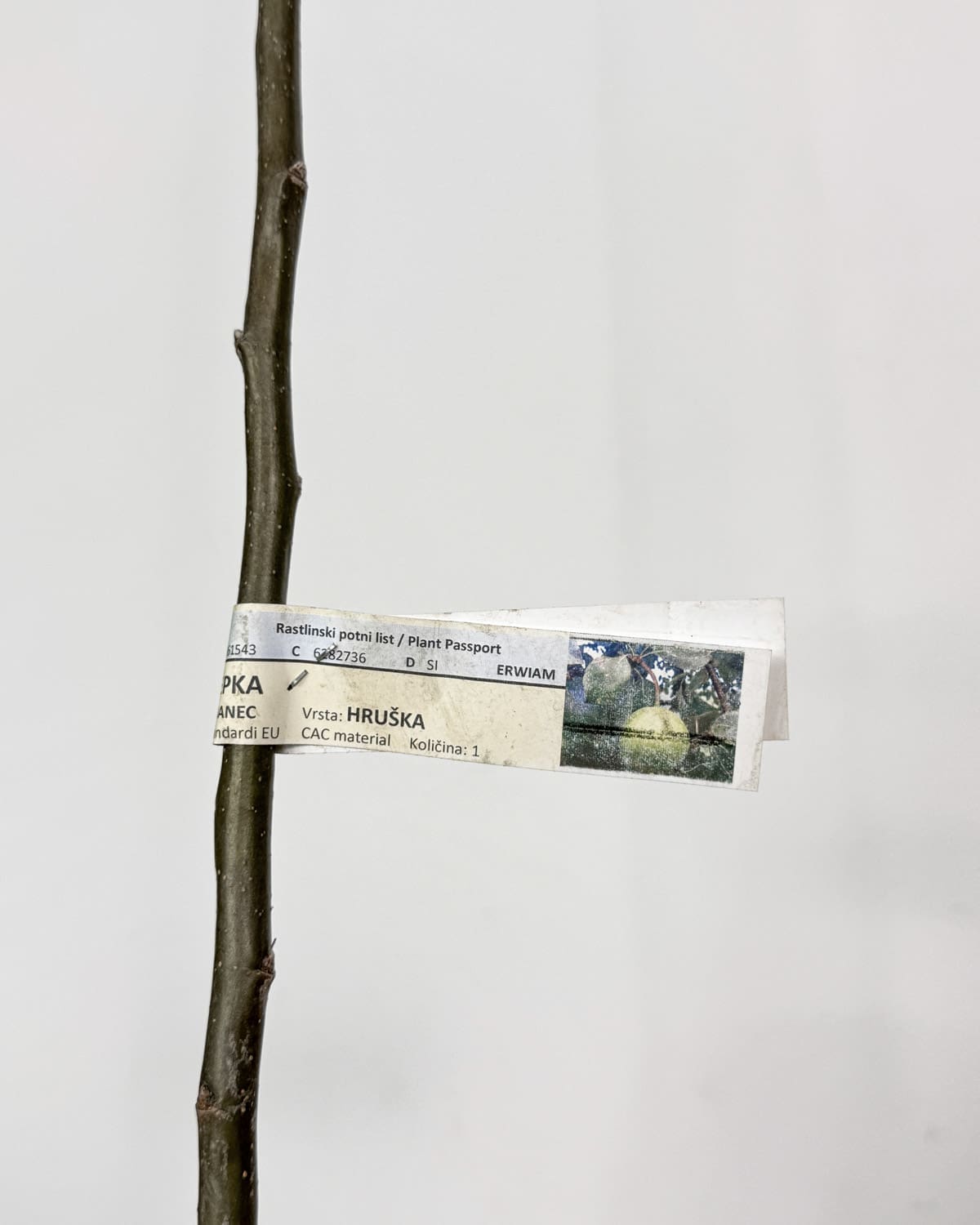 Sazenice pocházejí z malé místní ovocné školky ve Slovinsku. Pro lepší rozvětvení má již odříznutý vrchol, pro snadnější sázení a lepší růst jsou kořeny mírně přistřiženy. Je naroubována na středně silný podklad semenáč (hrušeň), proto dorůstá do výšky 3–4 metry a potřebuje oporu pouze v prvních dvou letech. Při sázení dodržuj vzdálenost mezi 2,5 až 4 metry.