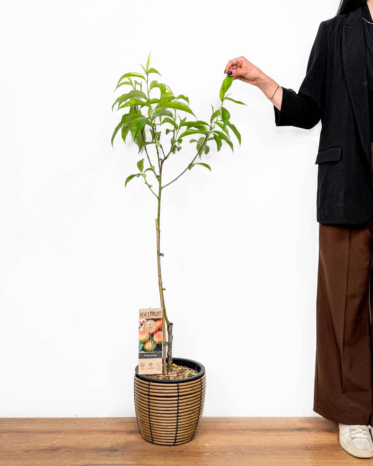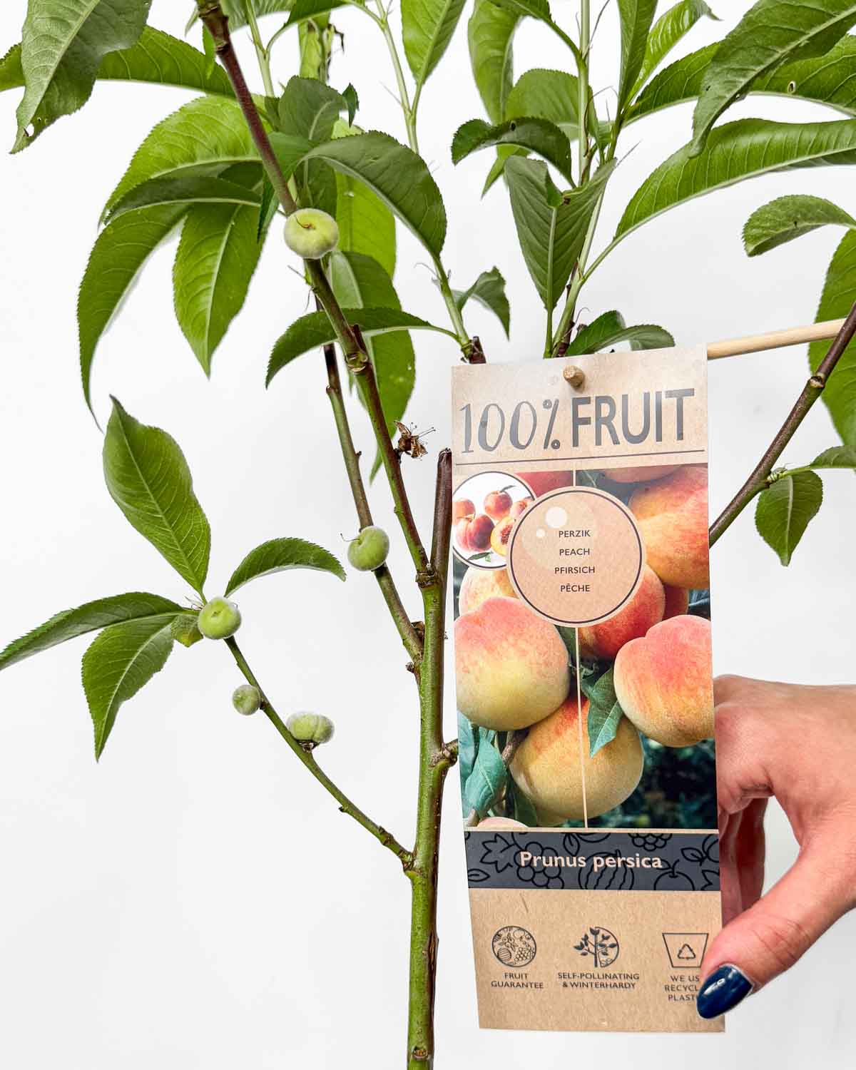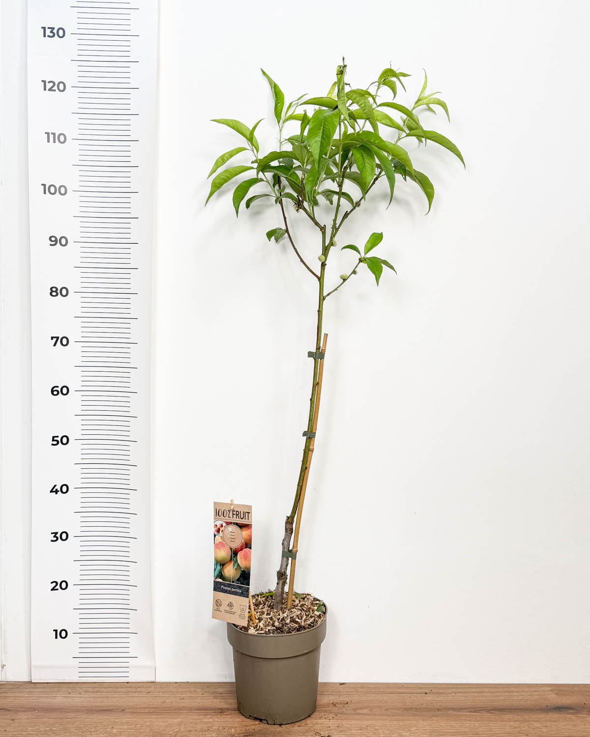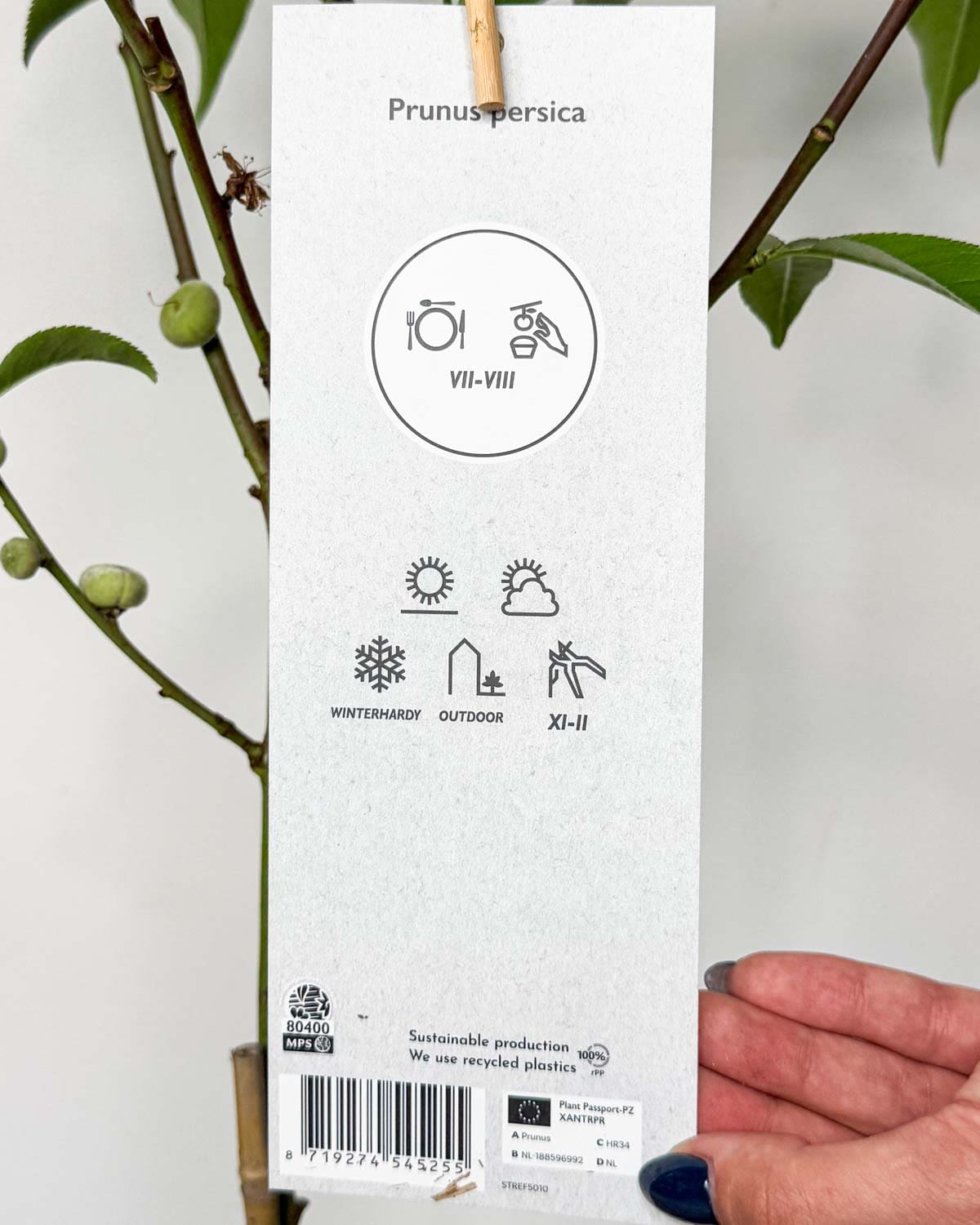 Jsem sazenice broskvoně (Prunus persica) a u tebe doma ti do poloviny léta nabídnu šťavnaté a sladké broskve – skvělé k přímé konzumaci, ale také ideální na džusy, marmelády nebo sladké dezerty. Na jaře rozkvétám něžně růžovými květy, které příjemně provoní vzduch a slibují bohatou úrodu. Jsem samosprašná, ale s jinou odrůdou broskve poblíž budu plodit ještě lépe.