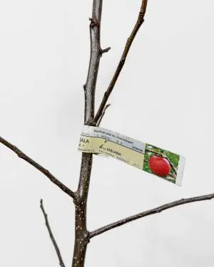 Ahoj! Jsem jednoletá jabloň ‚Gala‘ (Malus domestica), jedna z nejoblíbenějších odrůd na světě, známá svými středně velkými plody žluto-červené barvy. Zraju od srpna do září, mé plody jsou sladké, křupavé a šťavnaté. Jsem částečně samosprašná – pro lepší úrodu je doporučeno mít v blízkosti jiné odrůdy jabloní.