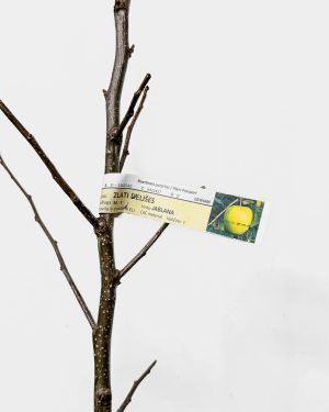 Ahoj! Jsem jednoletá jabloň ‚Golden Delicious‘ (Malus domestica), celosvětově známá odrůda, která plodí velké, žluté plody s charakteristickou sladkou a šťavnatou chutí. Zraji koncem září a v říjnu. Jsem samosprašná, což znamená, že mohu dobře plodit i bez jiné odrůdy, ale úroda bude ještě lepší, pokud mám v blízkosti jiného opylovače.