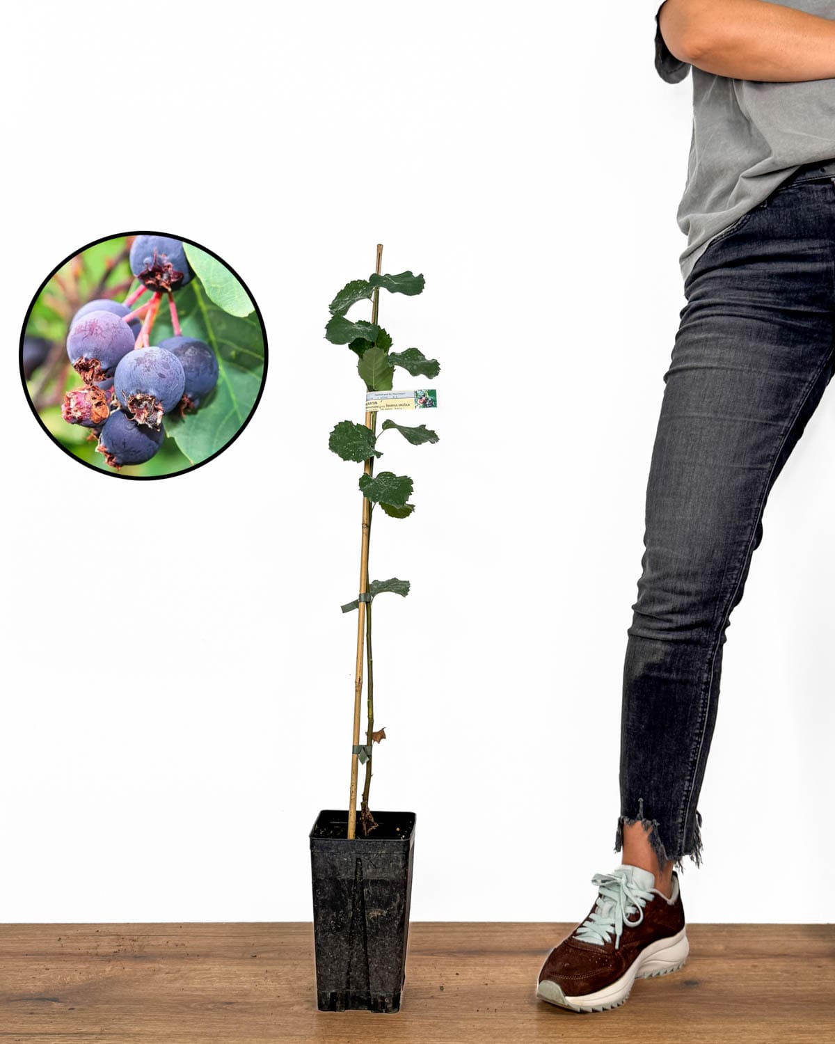 Ahoj! Jsem jednoletá sazenice muchovníku ‚Martin‘ (Amelanchier lamarckii), okrasně-ovocná rostlina, která okouzluje nádherným vzhledem a chutnými plody. Na jaře mě zdobí bohaté bílé květy, v létě pak vyvinu drobné, tmavě fialové plody sladké chuti, které jsou skvělé pro čerstvou konzumaci nebo zpracování na marmelády, šťávy a pečivo. Jen abys měl lepší představu, plody chutnají jako směs borůvek, třešní a jablek. 😉 Jsem samosprašná, takže nepotřebuji jiný druh rostliny pro opylení.