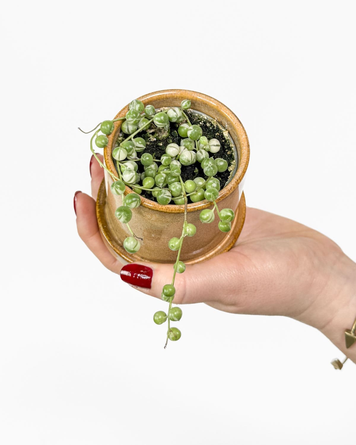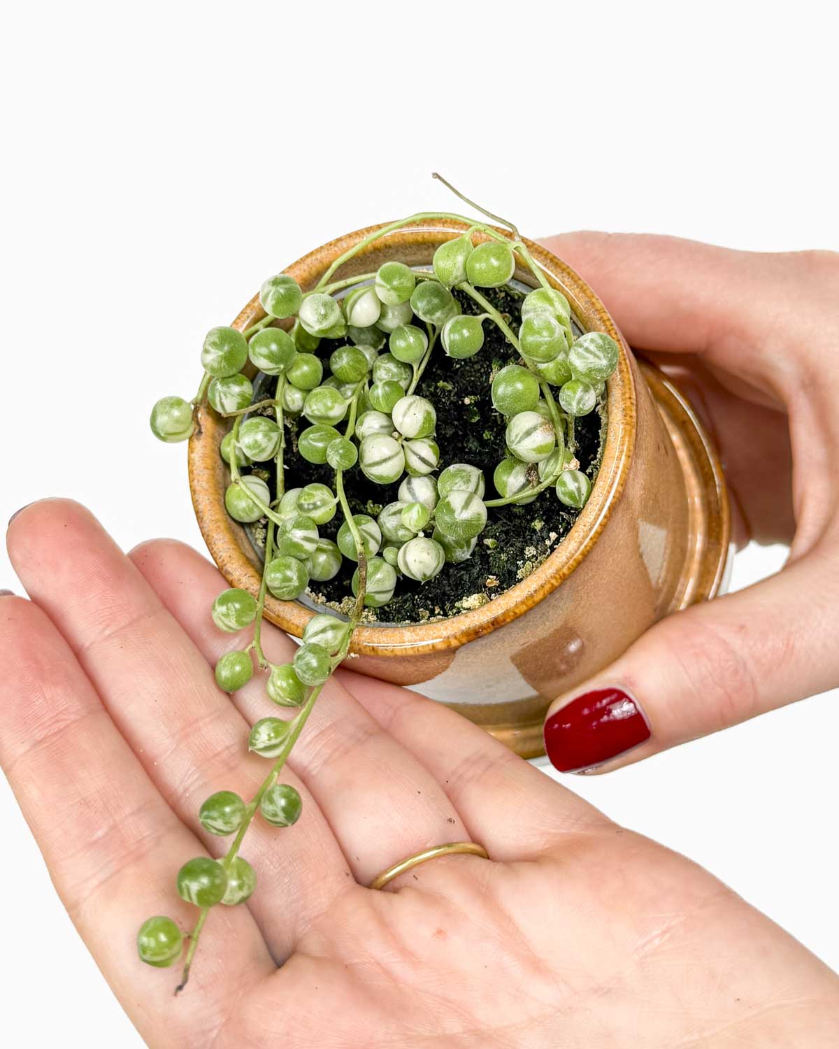 Jsem Starček převislý neboli String of pearls a jsem sukulent s dlouhými výhonky. Pokud tě nadchla moje zelená sestřička, pak se ti budu určitě líbit. Mám trendy bílé panašování, které mě činí ještě zvláštnější a unikátní. Ještě jedna položka na tvém seznamu přání! Moje výhonky jsou ozdobeny masitými listy ve tvaru perel, které zdobí náhodné bílé variegace. Závěsný květináč mi skvěle sluší, protože můžu dosáhnout délky až 90 cm. Jednoduše se rozmnožuji, protože rychle rostu. Můžeš mě pěstovat jak v bytě, tak venku, ale ne v zimě.
