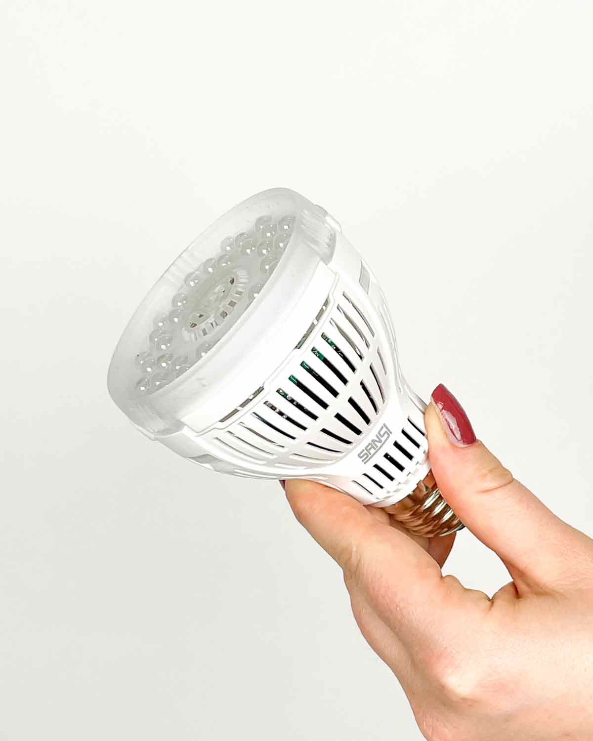 1. Zašroubujte SANSI 15W LED žárovku pro růst rostlin do svítidla s paticí E27.