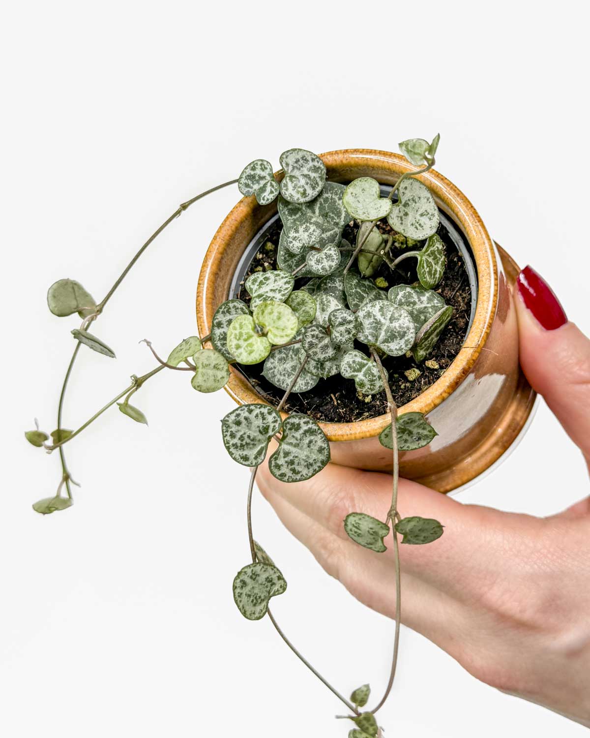 Srdíčka? Na mně jich najdeš, kolik chceš. Jsem Ceropegia woodii neboli lépe známá jako String of hearts a jsem závěsná rostlina. Má dlouhá stébla zdobí drobné srdcovité lístky. Nejlépe se mi daří v závěsném květináči a za správných podmínek velmi rychle rostu. V létě tě překvapím drobnými světle fialovými květy.
