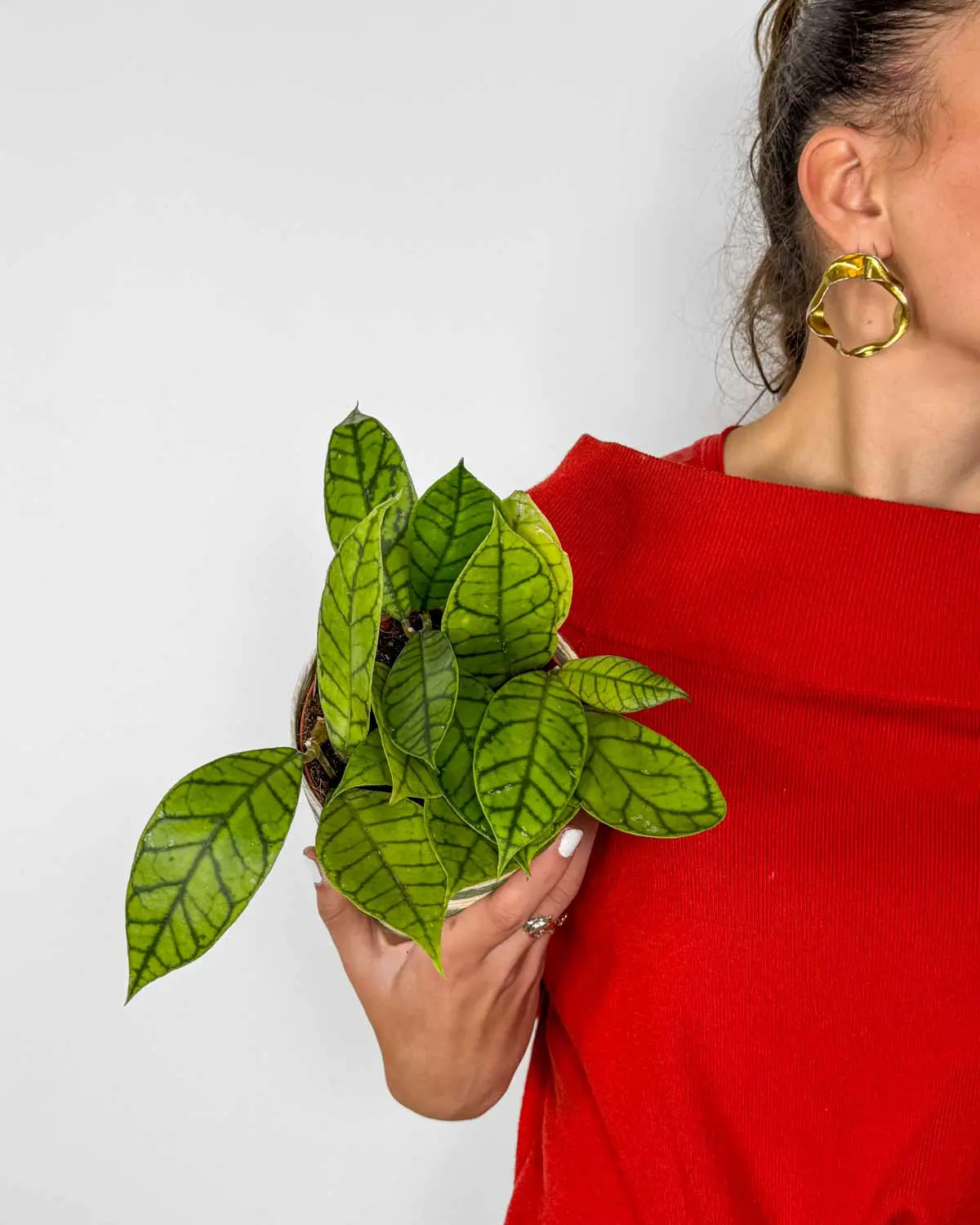 Jsme krásné pokojové rostliny – a já, Voskovka ‚callistophylla‘, patřím mezi ty vzácnější z nás. Na první pohled zaujmu svými podlouhlými listy s výrazným tmavým žilkováním. Pokud se u tebe budu cítit opravdu spokojeně, odměním tě květy, které provoní tvůj domov jemnou citrusovou vůní. Působím opravdu exoticky, co říkáš? A díky svému růstovému tvaru se budu krásně vyjímat i v závěsném květináči.